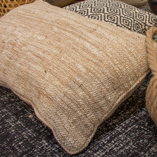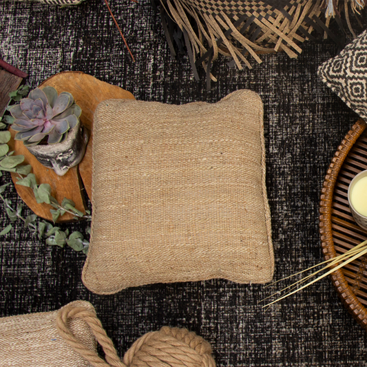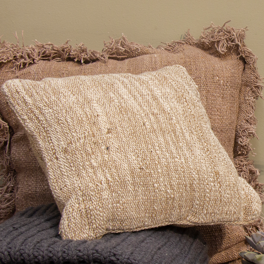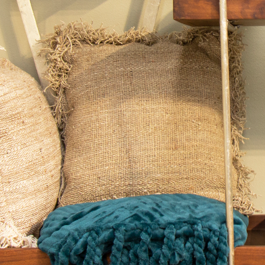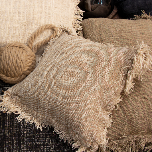 Cojín Café Jute 40X40 Con Fleco En Los Lado