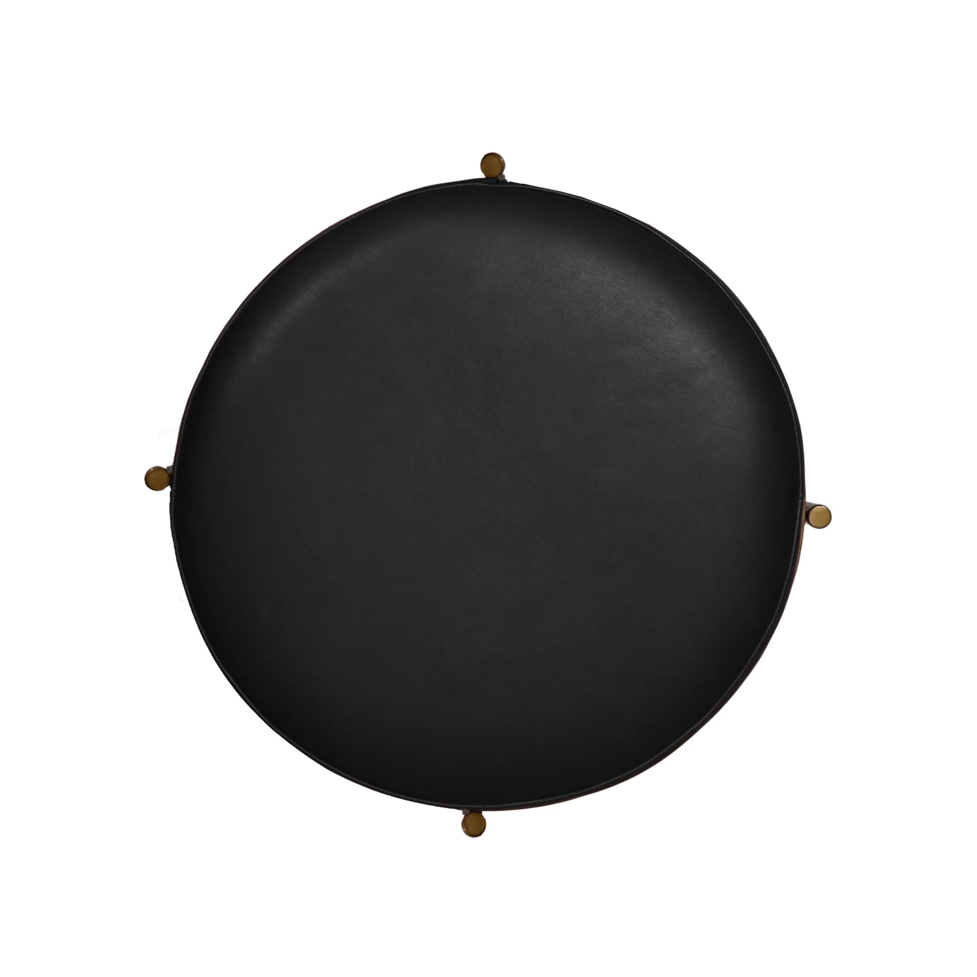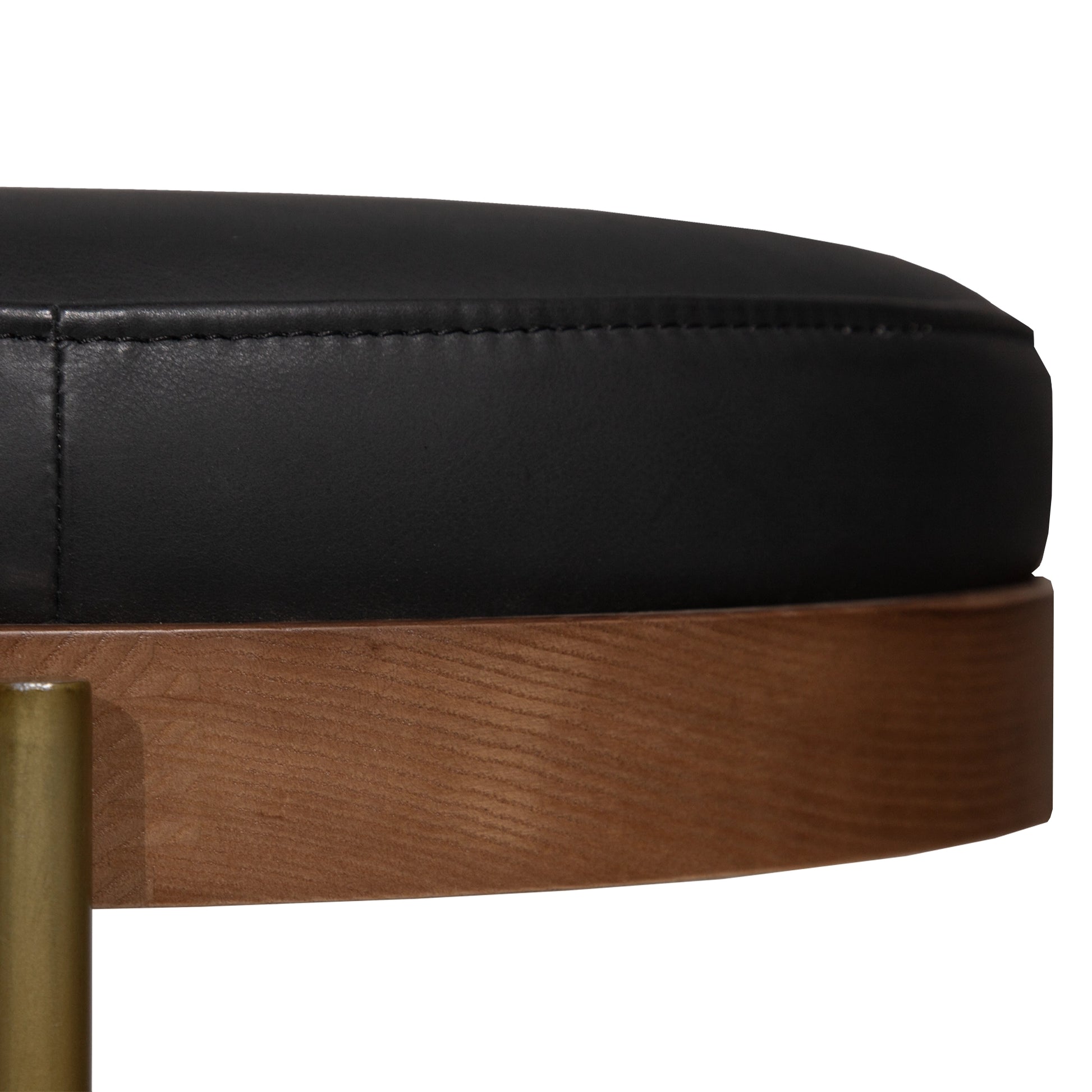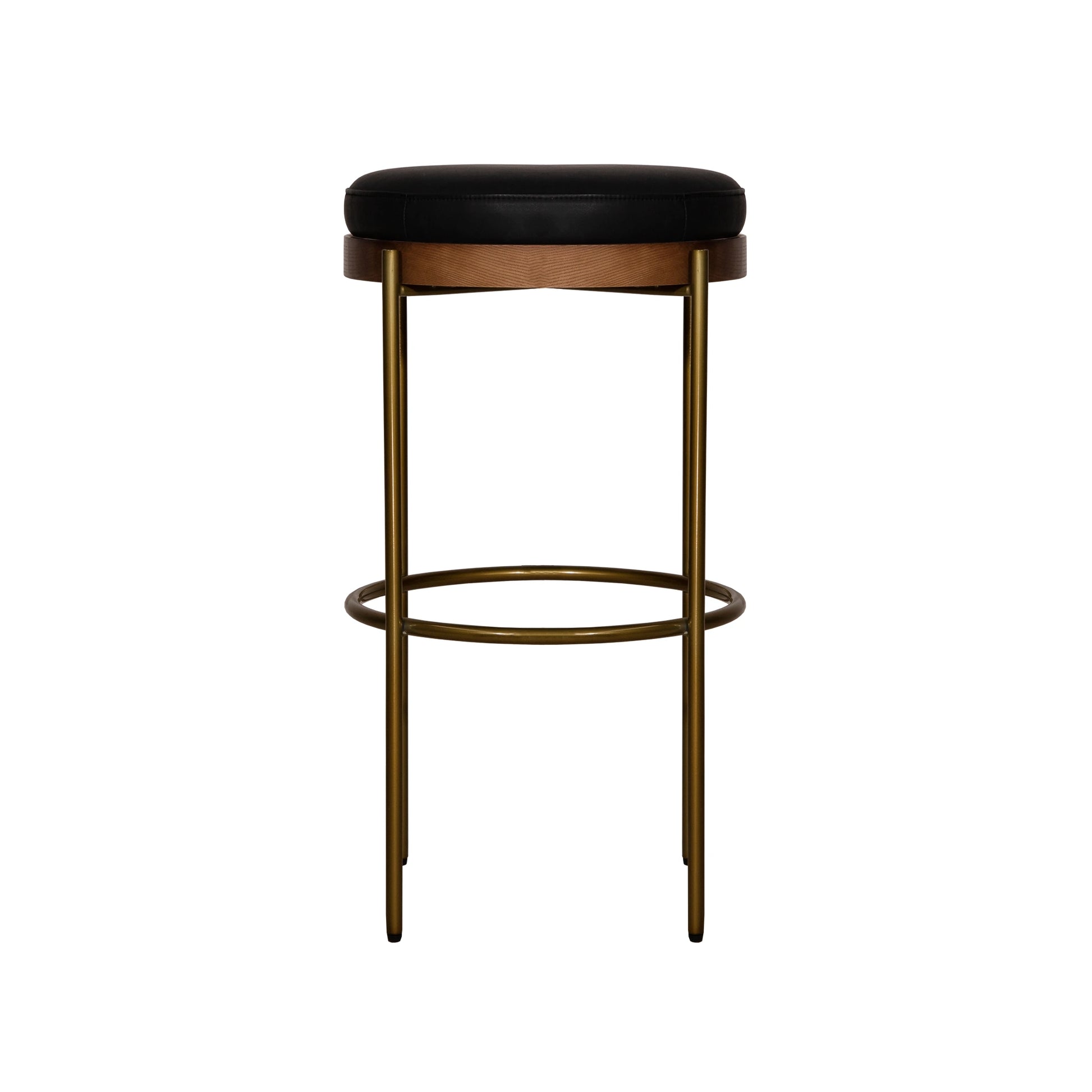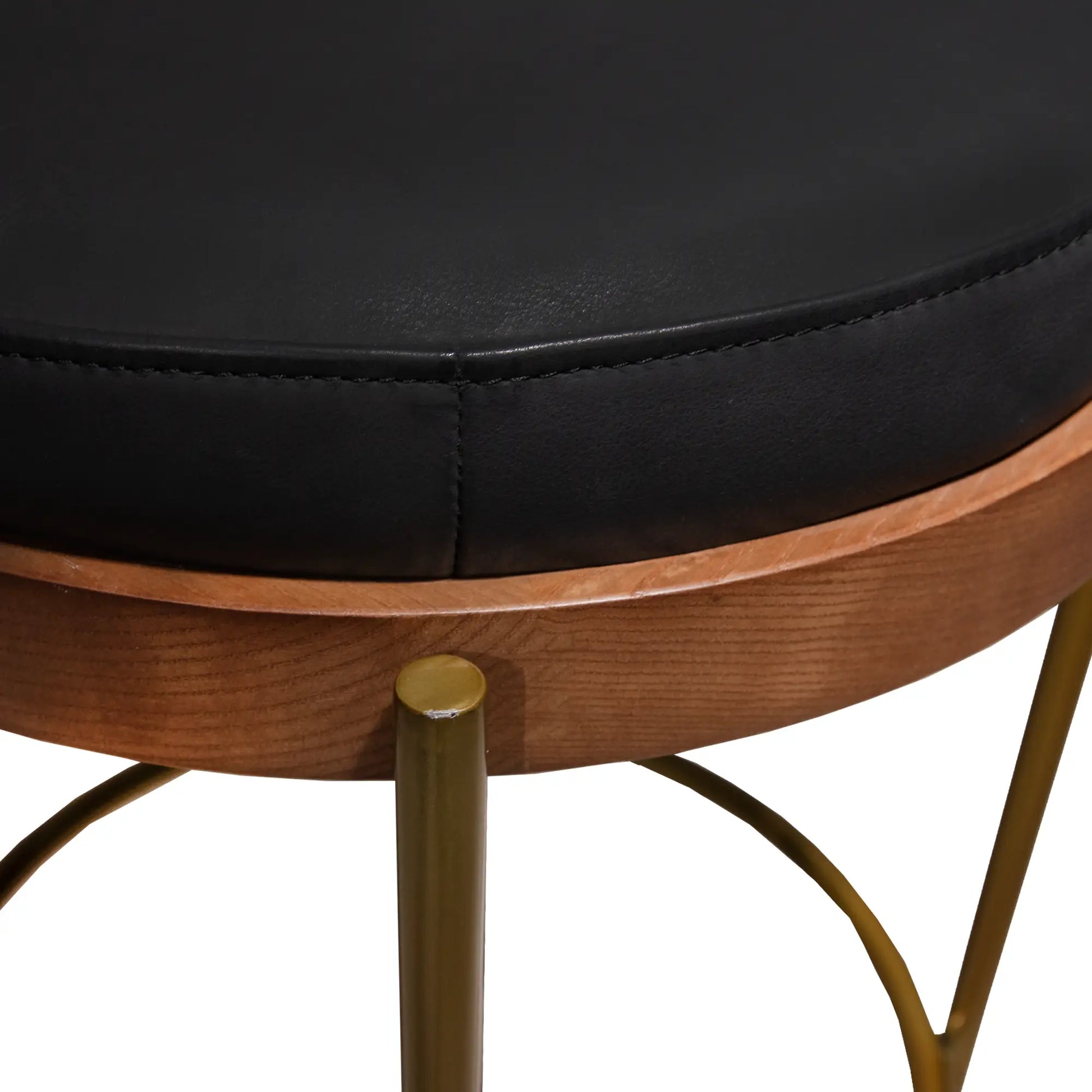 Asietno de madera de fresno y cojín de piel. Patas de hierro.
