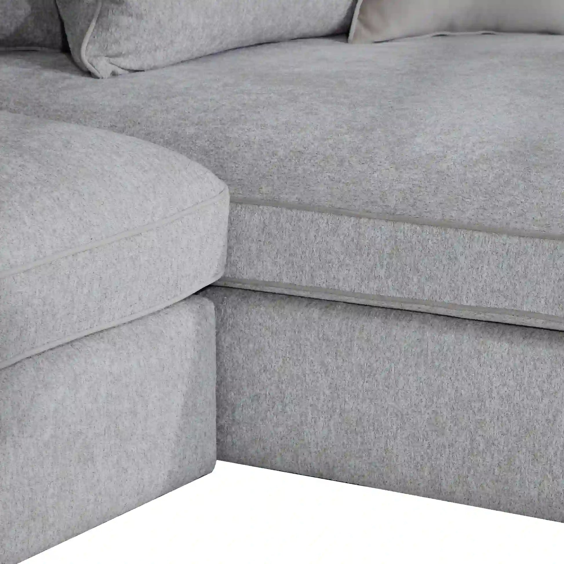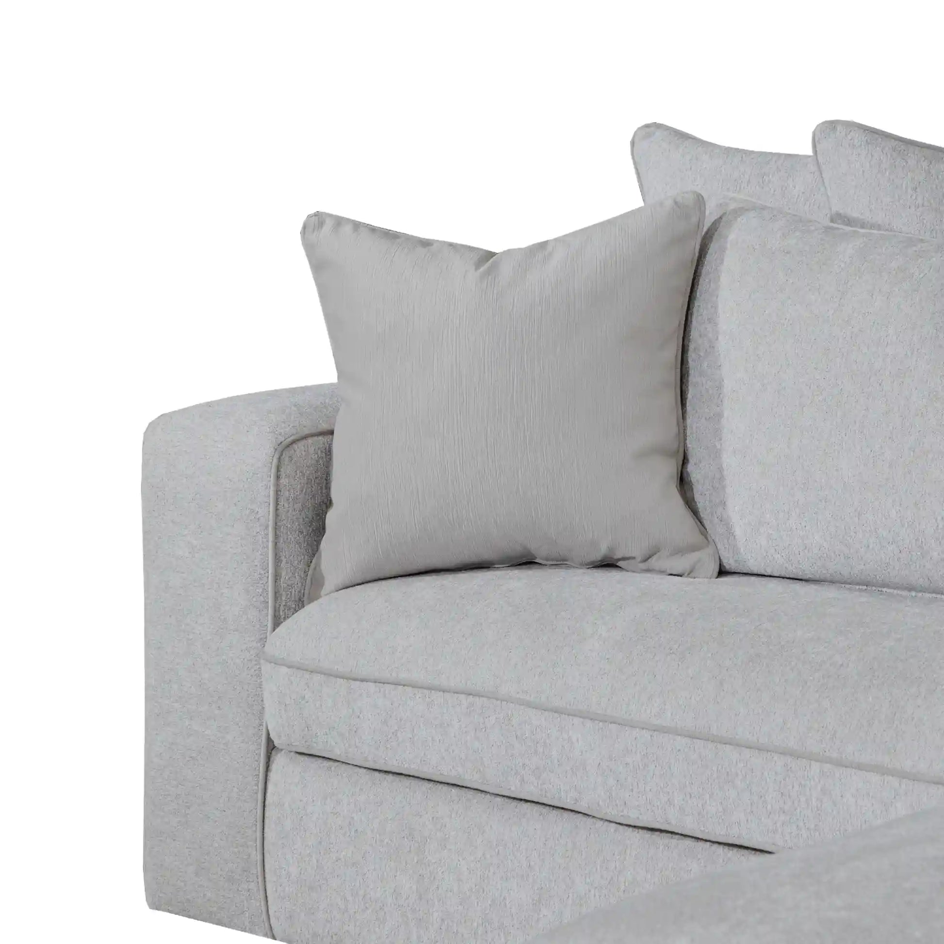 La Escuadra Zúrich es la pieza perfecta para crear un rincón de máximo descanso, combinando un diseño moderno y estructurado con la promesa de una comodidad envolvente. Su diseño presenta una estructura de líneas limpias y brazos rectos, que se equilibra con una tapicería de textura suave y atractiva. El tapizado en un tono blanco jaspeado aporta una riqueza visual y una sensación de lujo casual. La Escuadra Zúrich es ideal para salas que buscan un diseño moderno, profundamente cómodo y con un aire relajado y sofisticado.