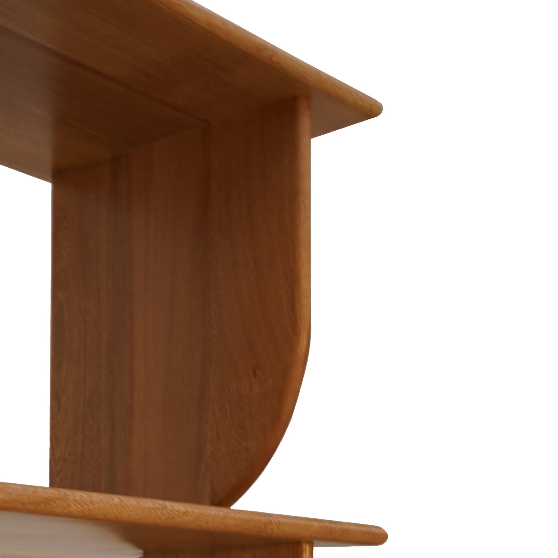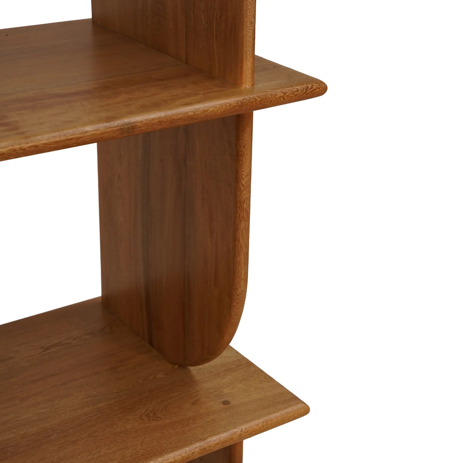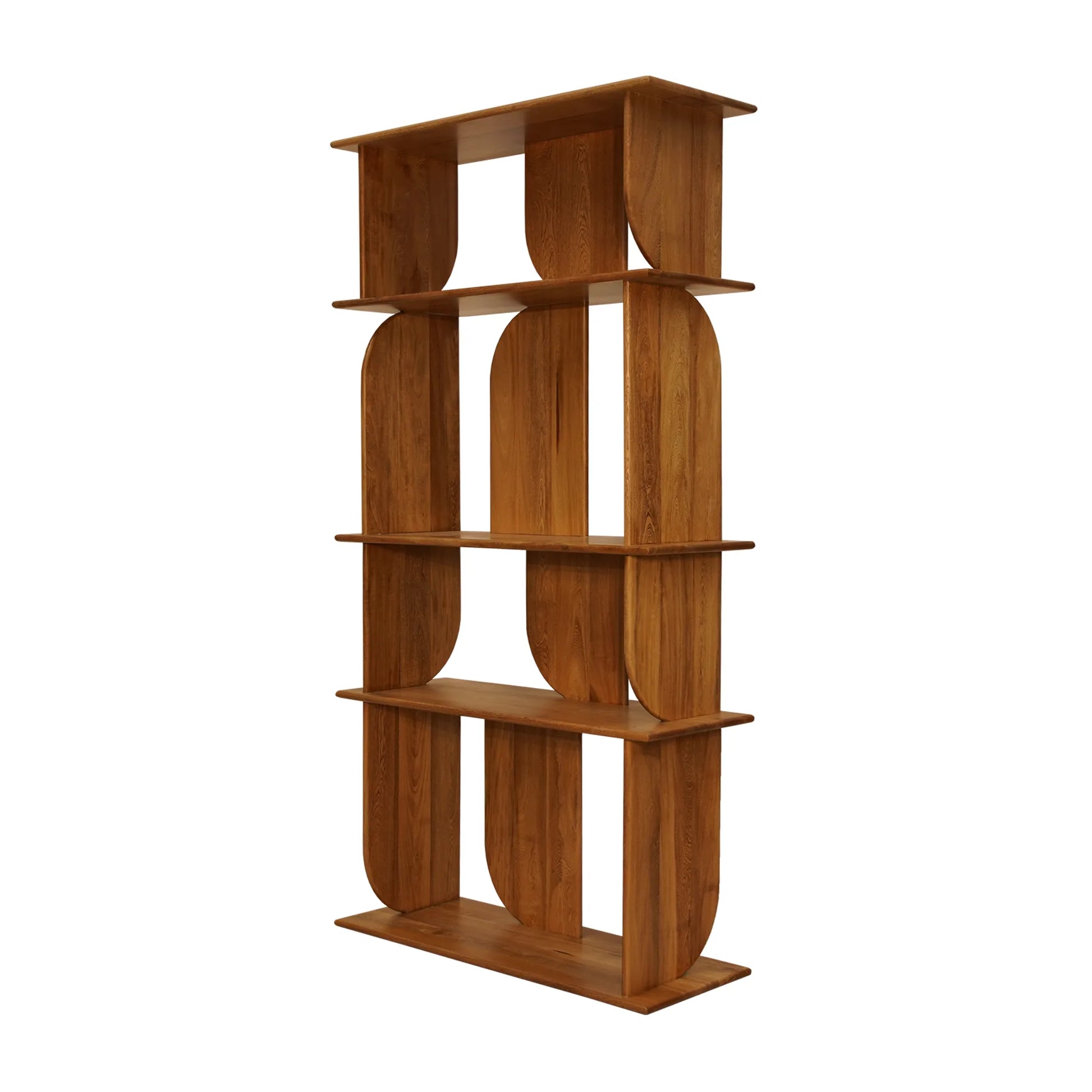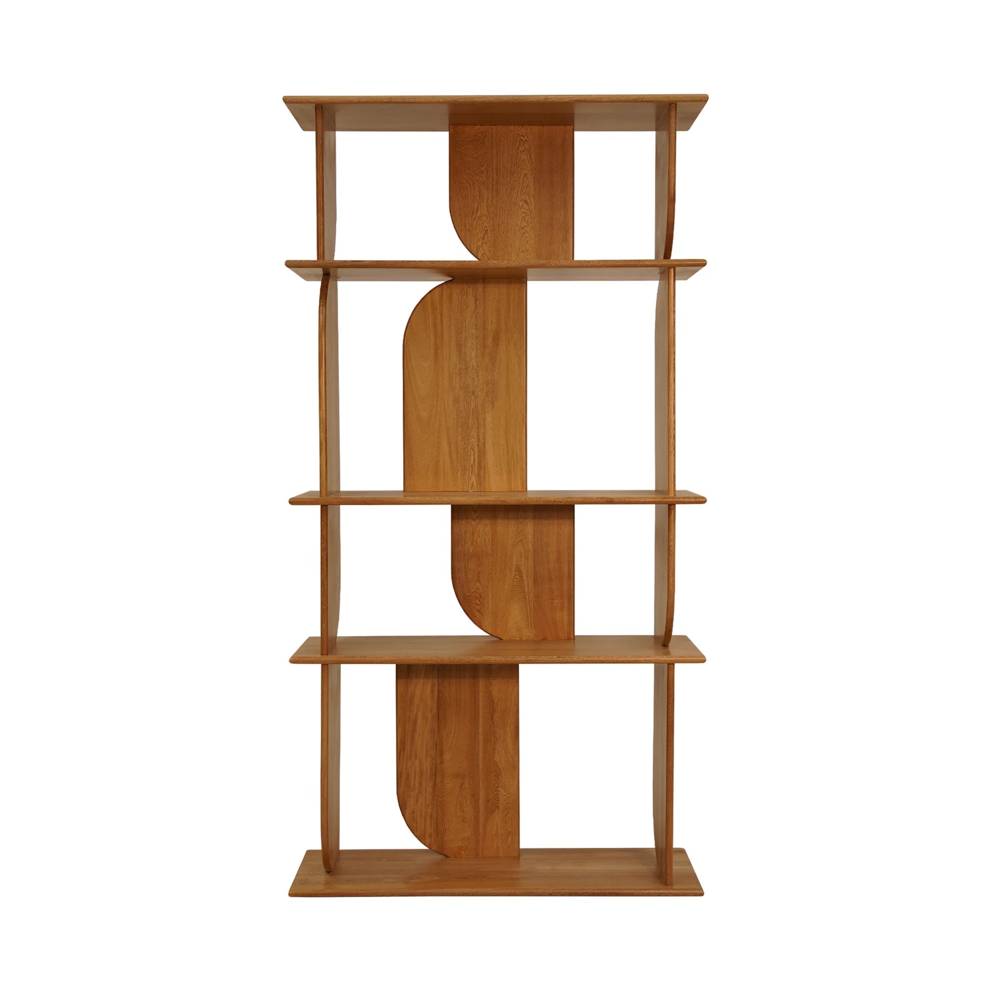 El Librero Oporto es una pieza de almacenamiento que rompe con la monotonía de las líneas rectas, ofreciendo un diseño escultural, orgánico y visualmente dinámico. Fabricado en una madera clara y cálida (con vetas naturales visibles), su diseño se define por la interacción entre los estantes horizontales y los paneles verticales curvos. Los paneles centrales presentan formas suaves y redondeadas, dispuestas de manera que crean un flujo visual en zig-zag a lo largo de la estructura. El Librero Oporto es ideal para quienes buscan una obra de arte independiente, aportando un estilo moderno, suave y con mucho carácter a cualquier sala u oficina.