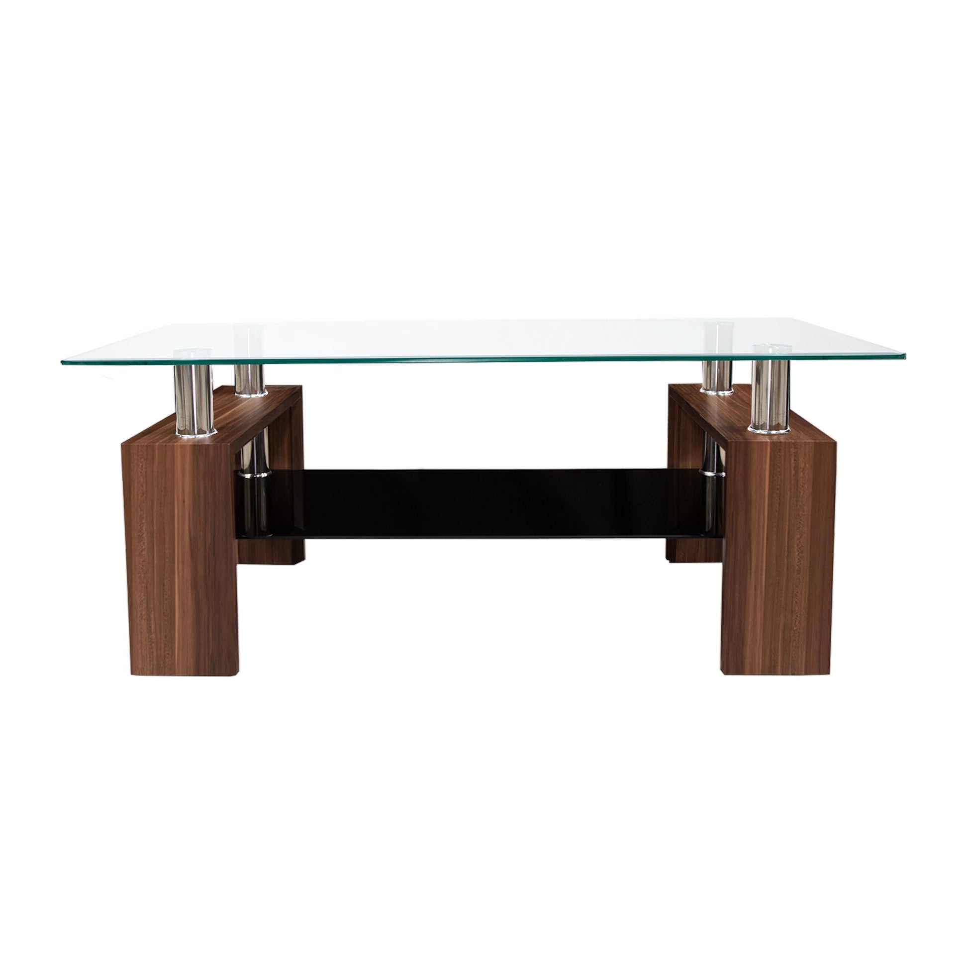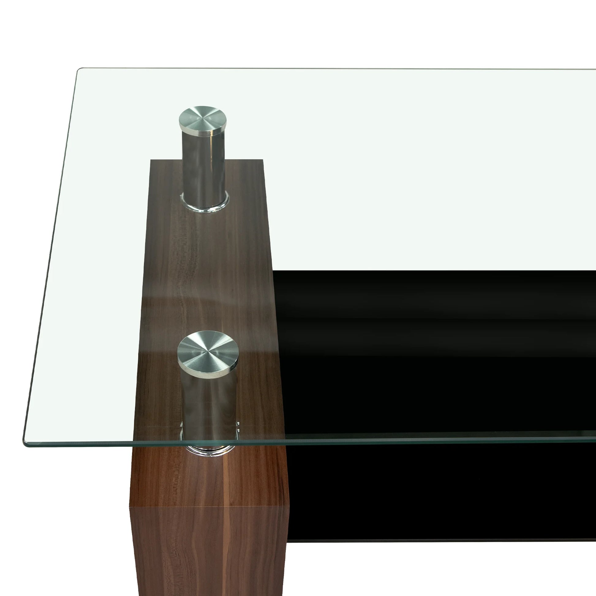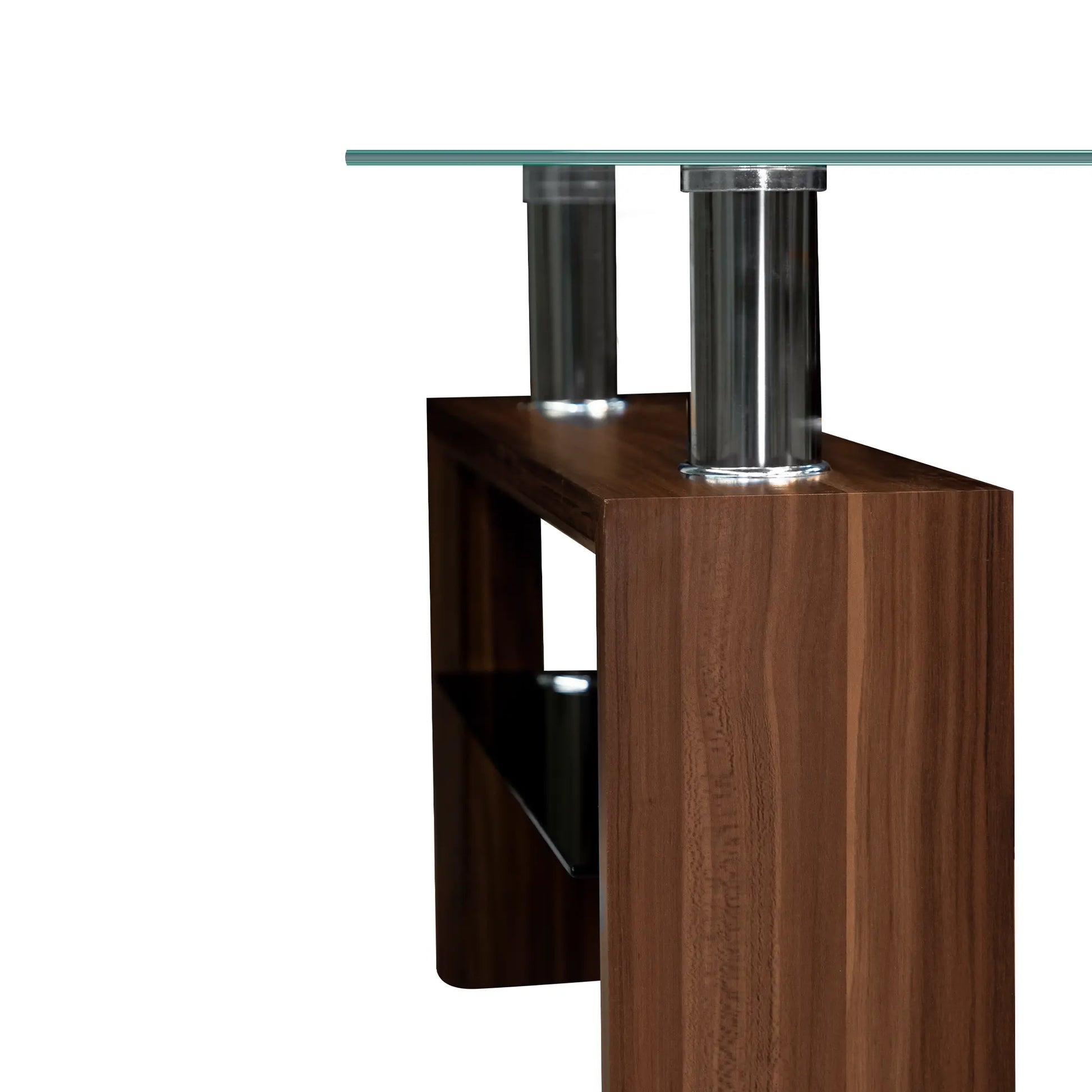 La Mesa de Centro Puentes es una pieza de diseño que se inspira en la arquitectura moderna y la ingeniería estructural, creando un mueble auxiliar visualmente cautivador. La cubierta superior es de cristal templado transparente, lo que permite una vista completa de la estructura interna. Un estante inferior de cristal negro proporciona funcionalidad adicional y añade un fuerte contraste de color. La Mesa de Centro Puentes es la elección ideal para quienes buscan un diseño industrial-moderno, compacto y funcional, que combine la solidez de la madera con la ligereza del cristal y el brillo del metal.