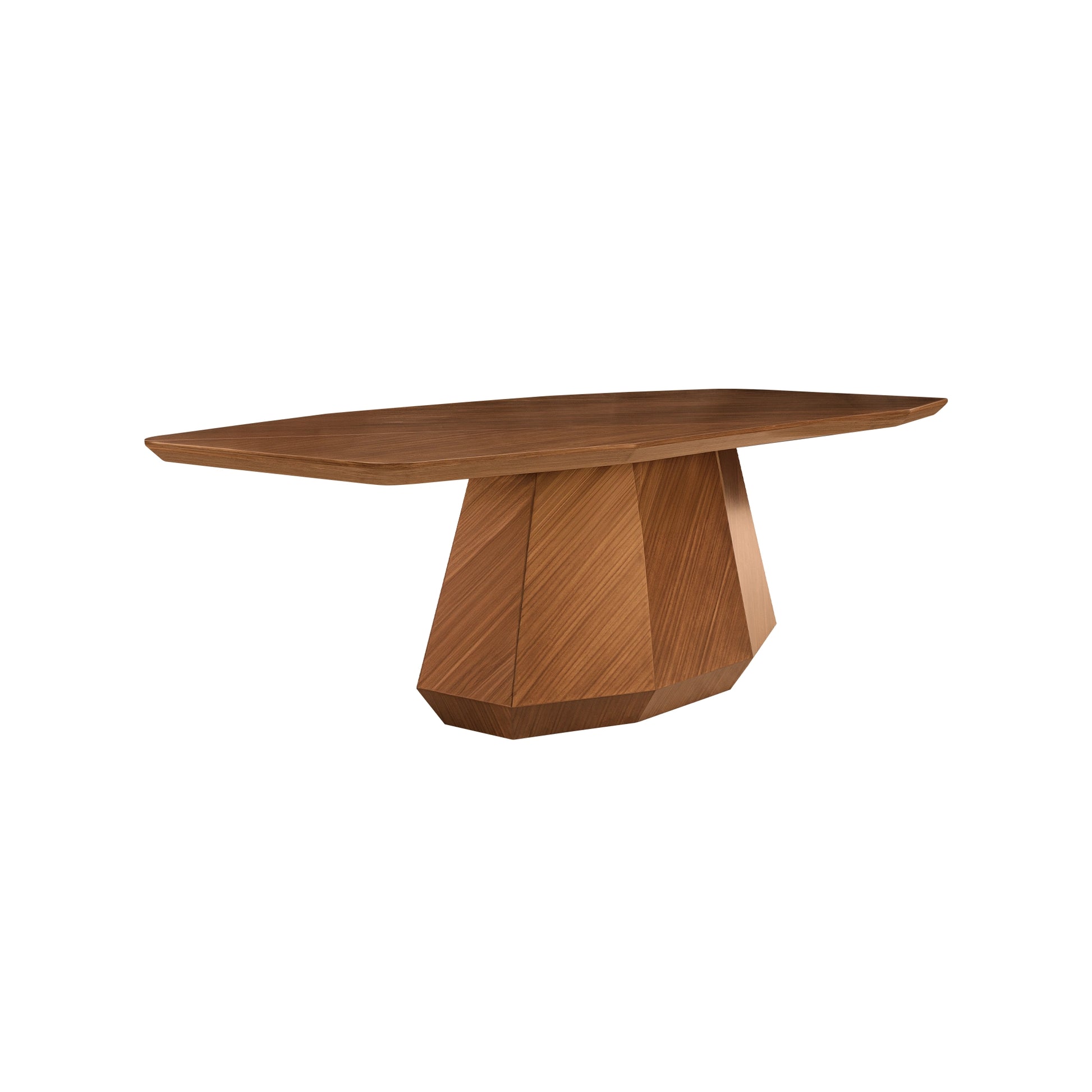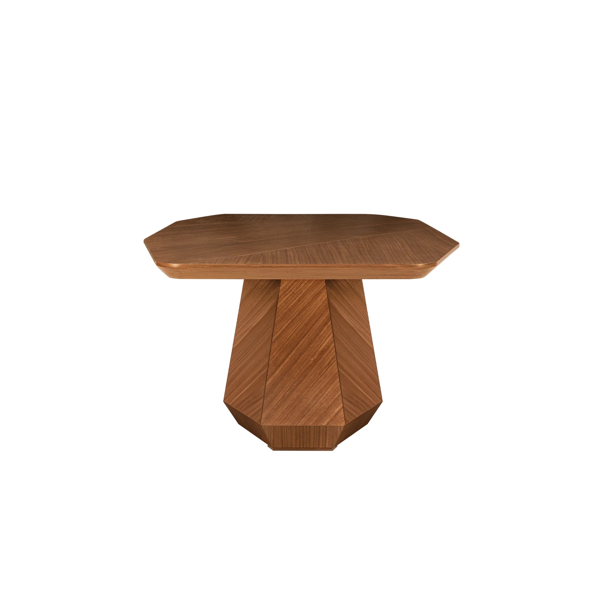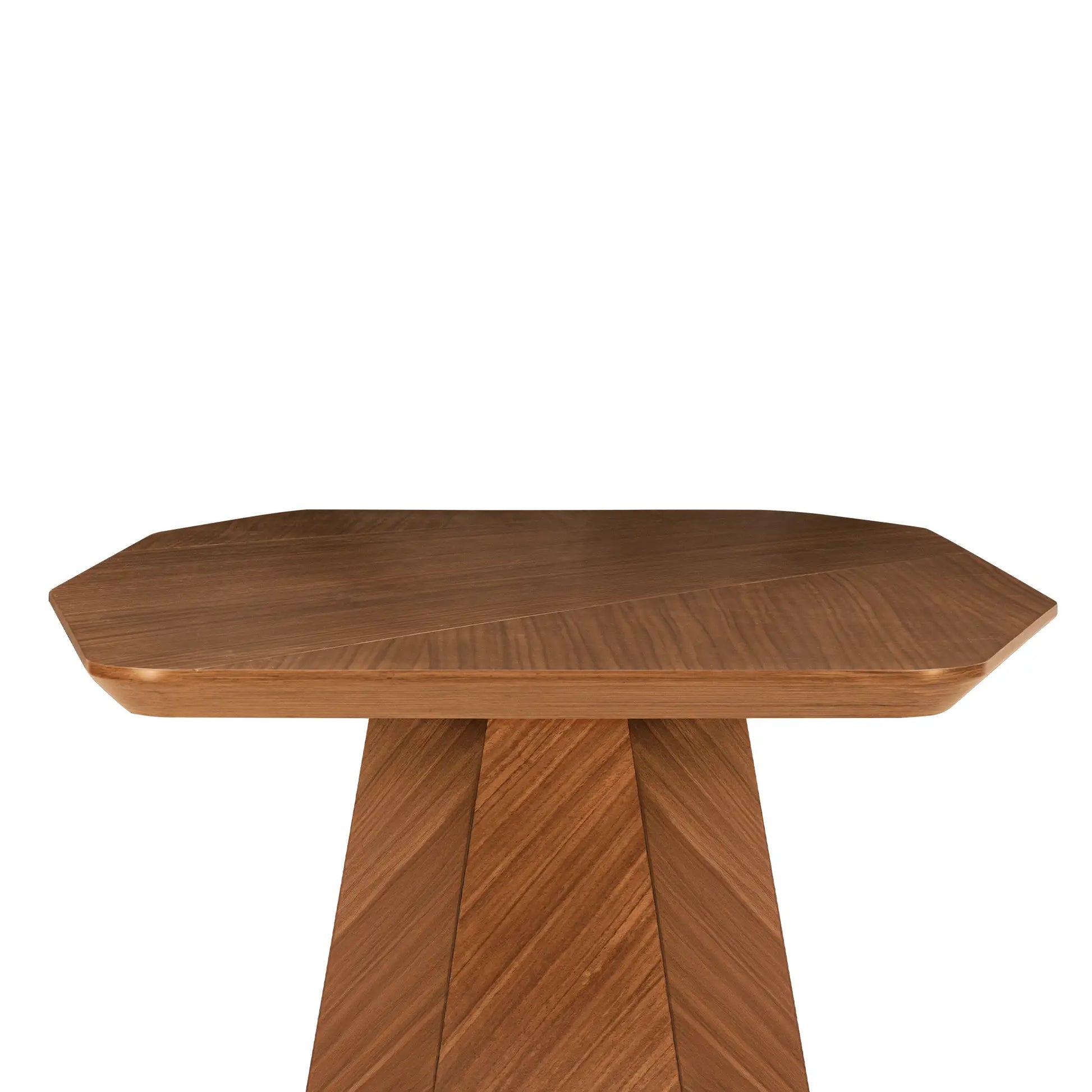 La Mesa Comedor Estambul es una pieza que fusiona la calidez de la madera con una base geométrica y arquitectónica, creando un punto focal de gran sofisticación. El verdadero distintivo es su base central de pedestal, diseñada con múltiples facetas geométricas que le confieren una forma de diamante o poliedro invertido. La Mesa Comedor Estambul es la elección perfecta para quienes buscan un diseño moderno, robusto y elegante, con una base que funciona como una verdadera escultura en el comedor.