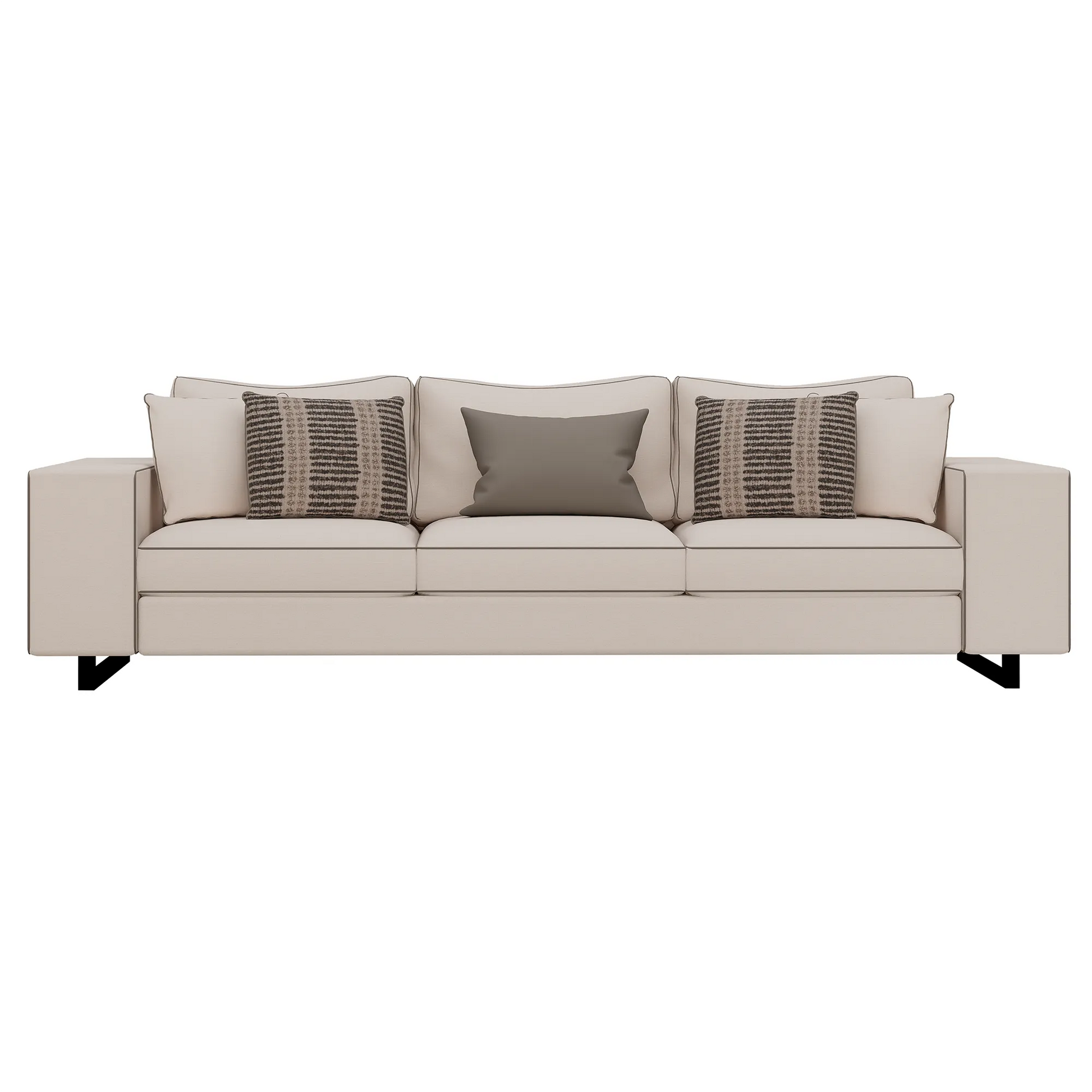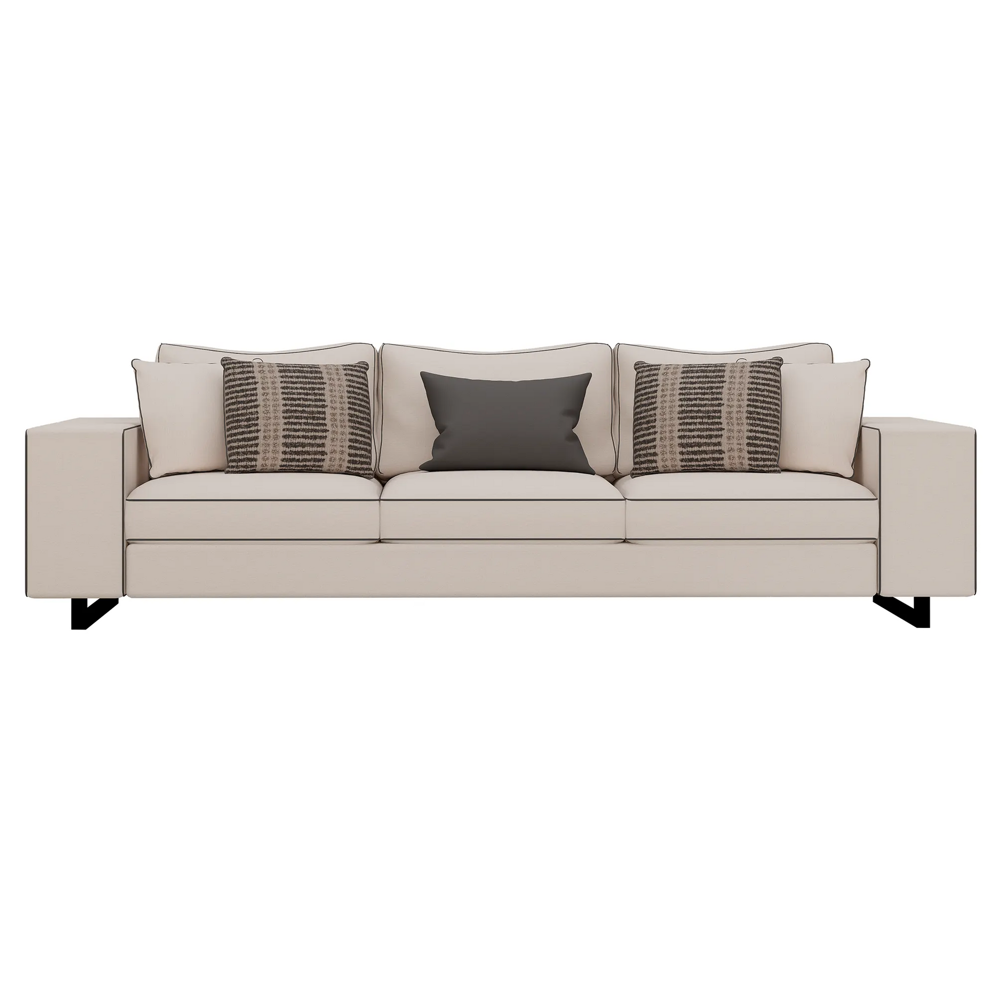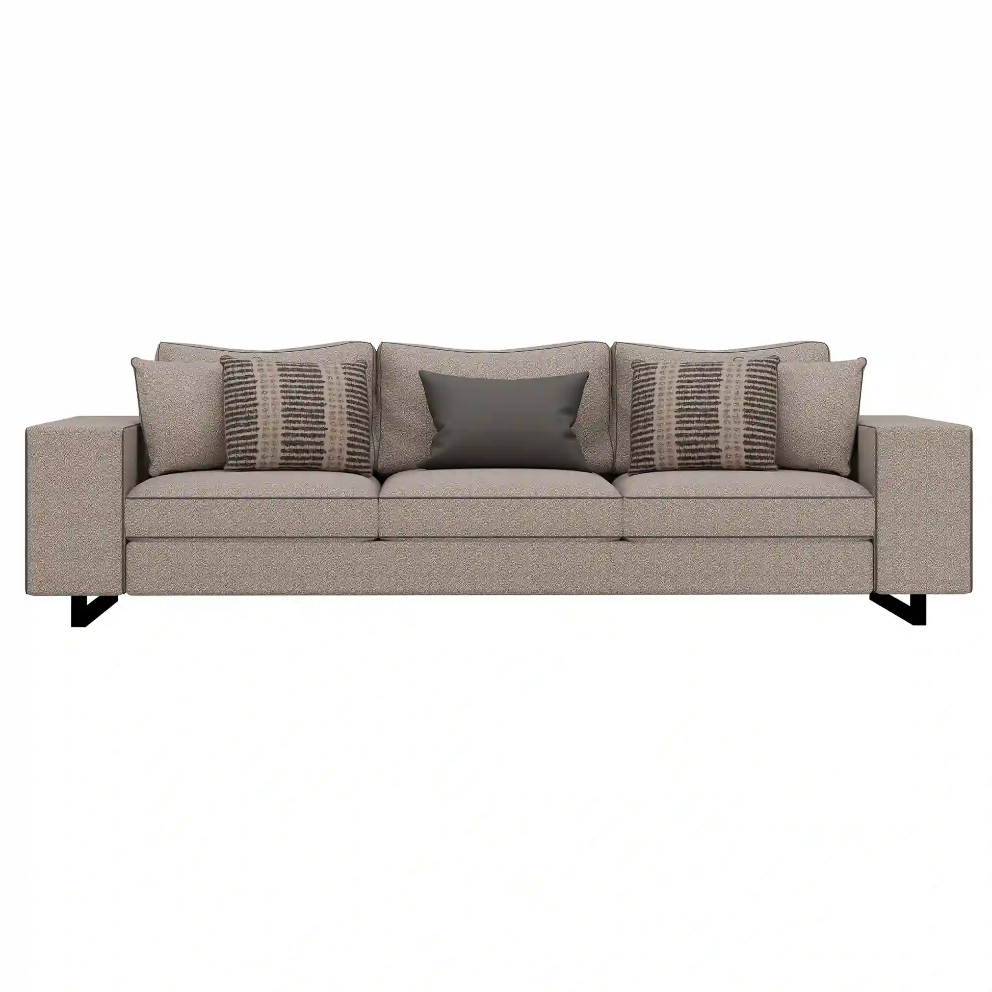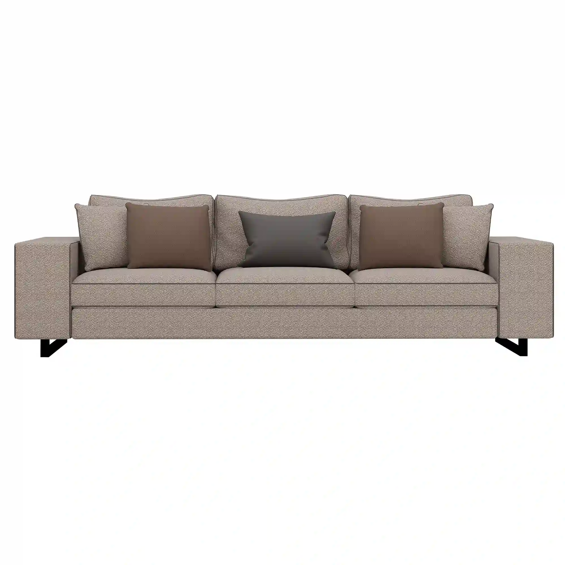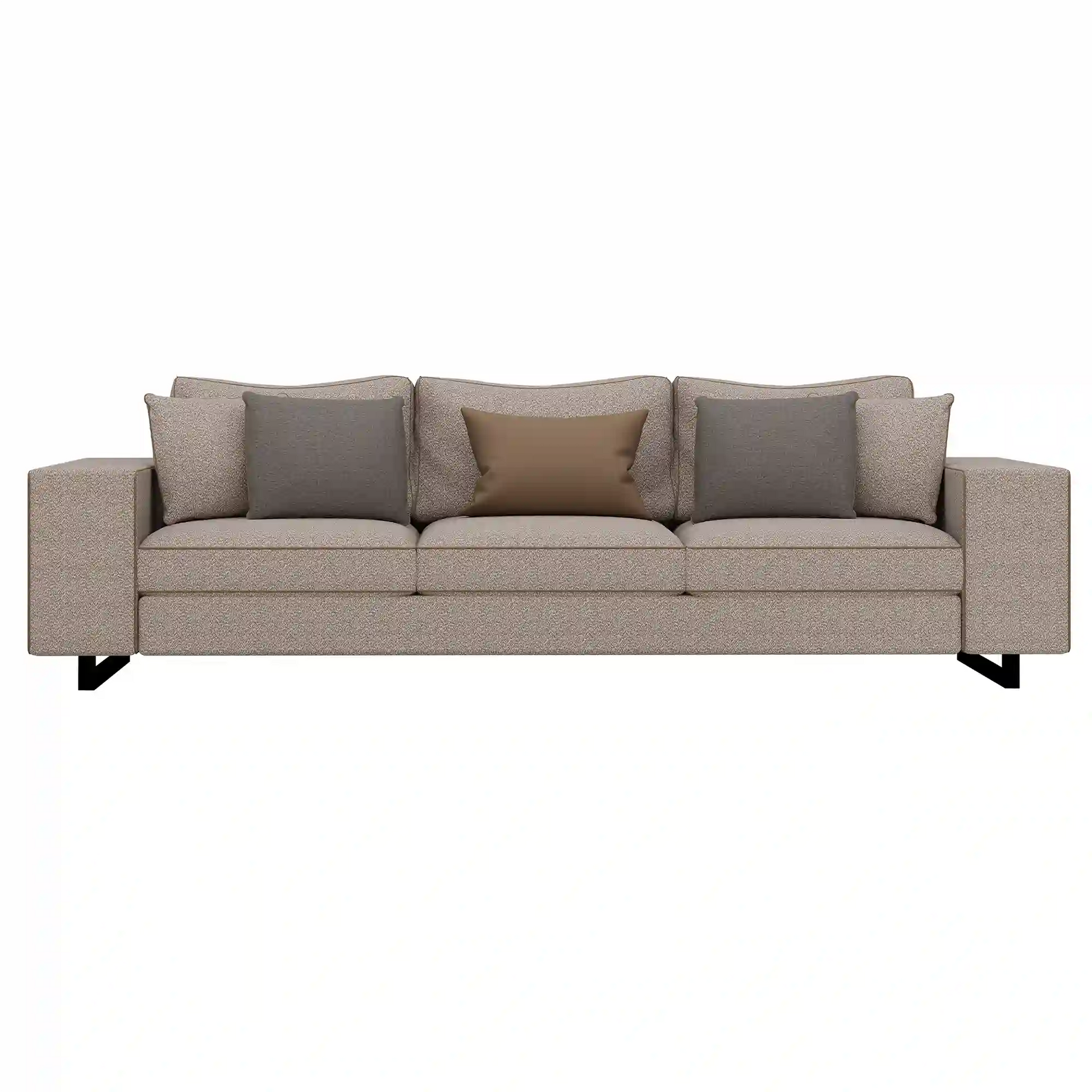 El Sofá Piero es una pieza que equilibra la elegancia formal con un diseño de máximo confort, ideal para salas que buscan un ambiente sofisticado y acogedor. Está tapizado en un tejido suave de tono beige o taupe claro, con un ribete sutil que perfila los cojines, añadiendo un detalle de diseño pulido. Estos cojines, que combinan texturas jaspeadas y tonos sólidos, permiten al usuario personalizar su nivel de soporte y estilo. El Sofá Piero es la elección perfecta para quienes buscan un diseño moderno, un lujo suave y una adaptabilidad excepcional en una pieza central.