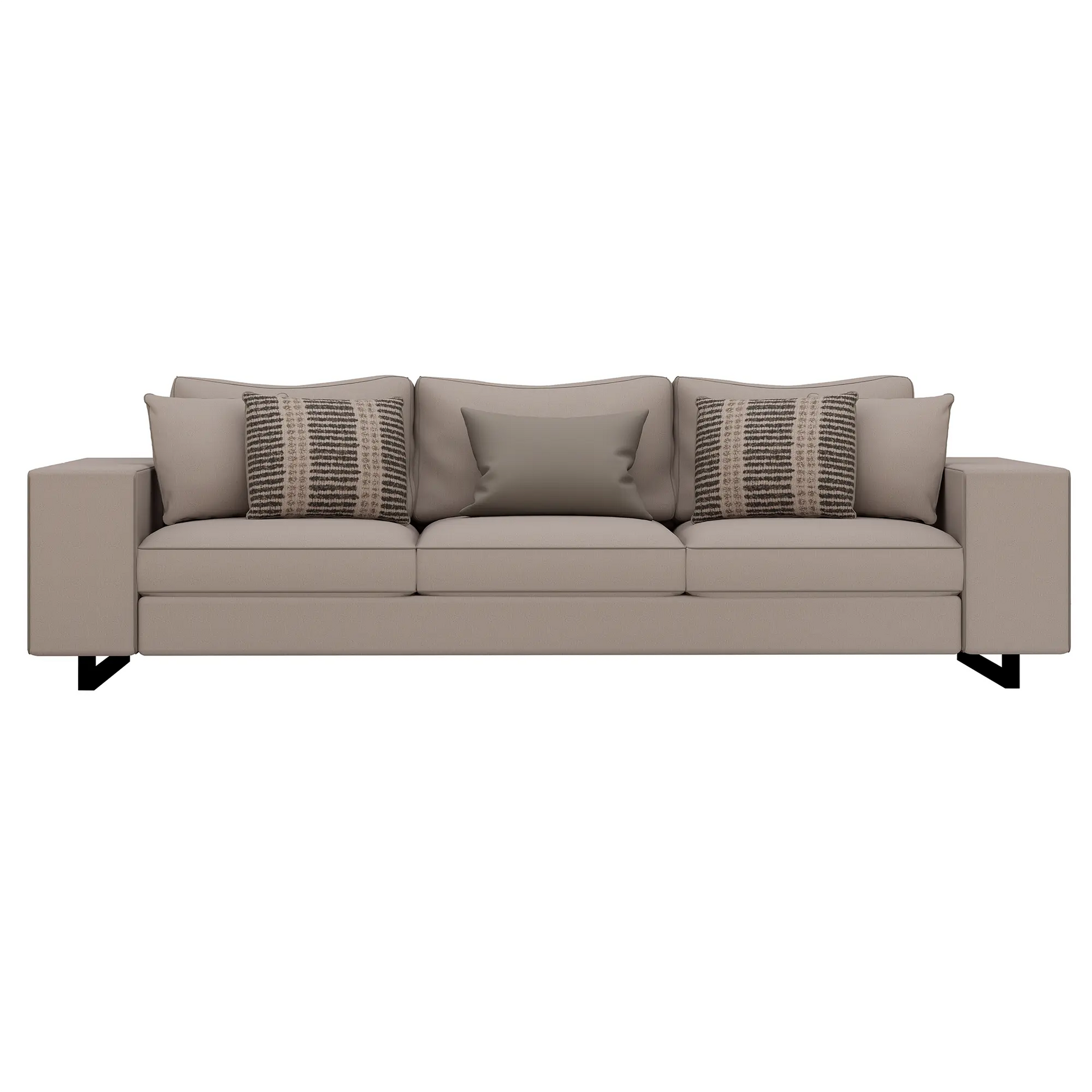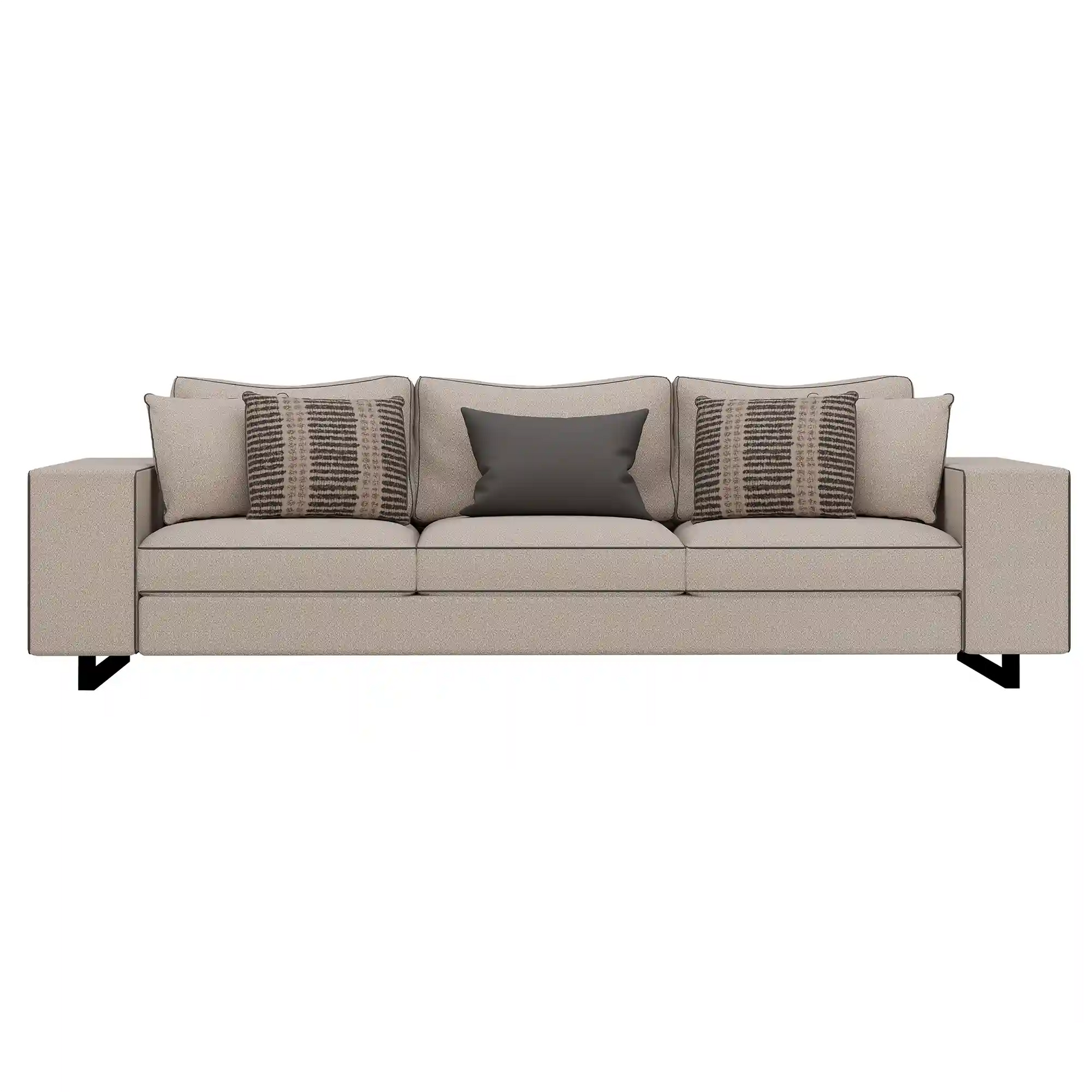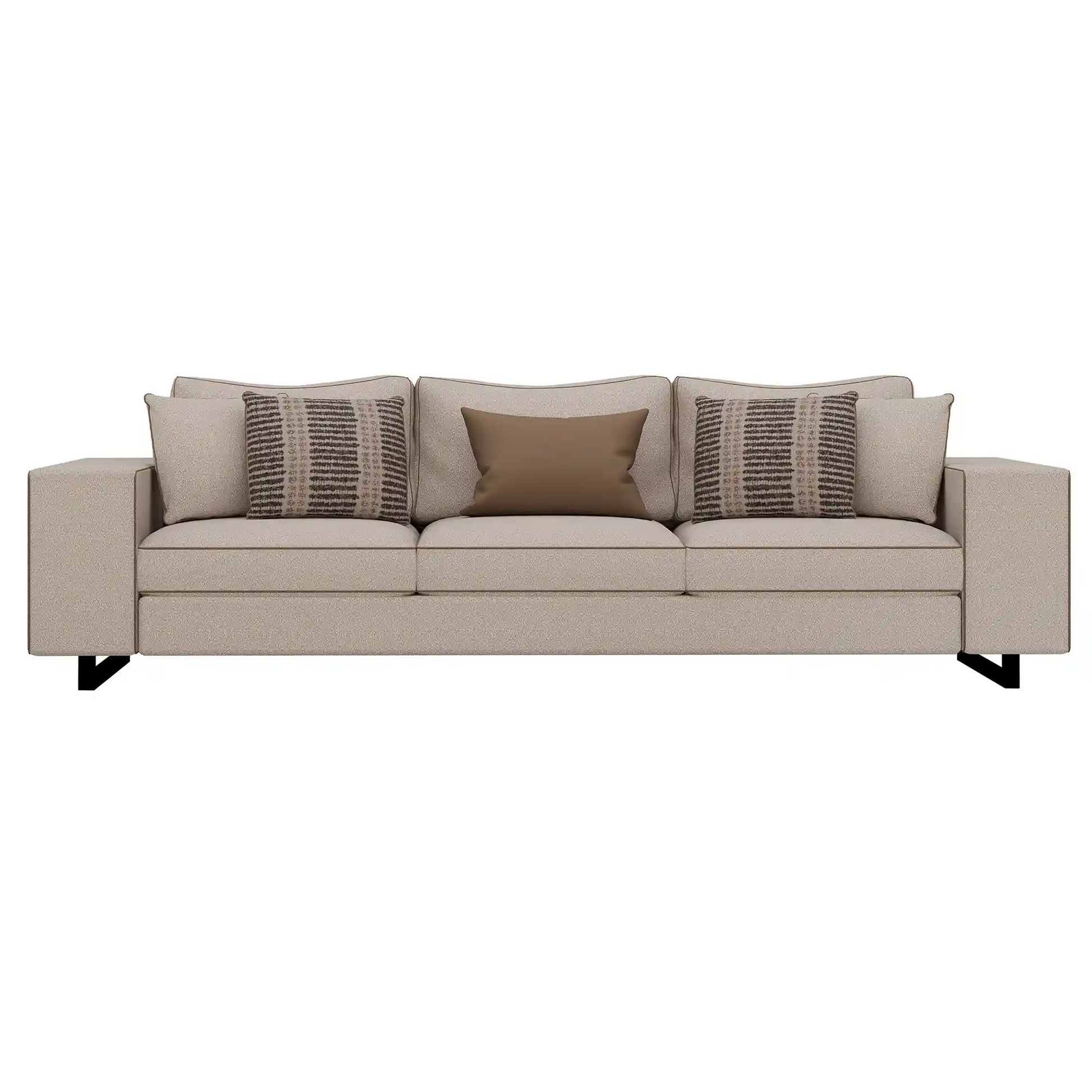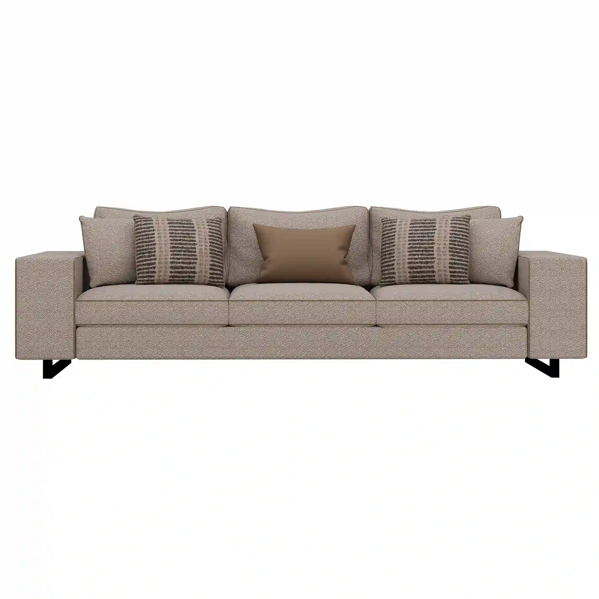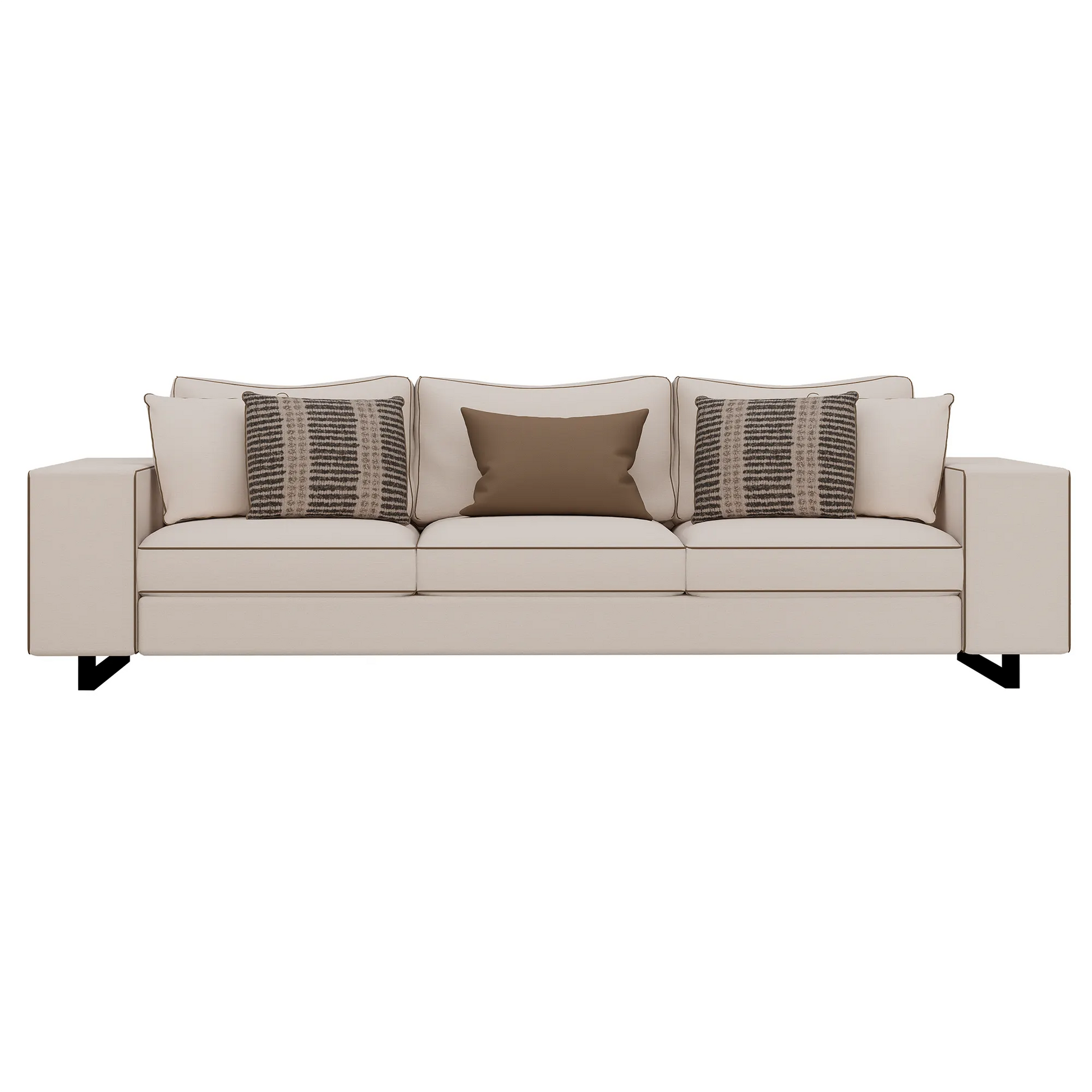 El Sofá Piero es una pieza que equilibra la elegancia formal con un diseño de máximo confort, ideal para salas que buscan un ambiente sofisticado y acogedor. Está tapizado en un tejido suave de tono beige o taupe claro, con un ribete sutil que perfila los cojines, añadiendo un detalle de diseño pulido. Estos cojines, que combinan texturas jaspeadas y tonos sólidos, permiten al usuario personalizar su nivel de soporte y estilo. El Sofá Piero es la elección perfecta para quienes buscan un diseño moderno, un lujo suave y una adaptabilidad excepcional en una pieza central.