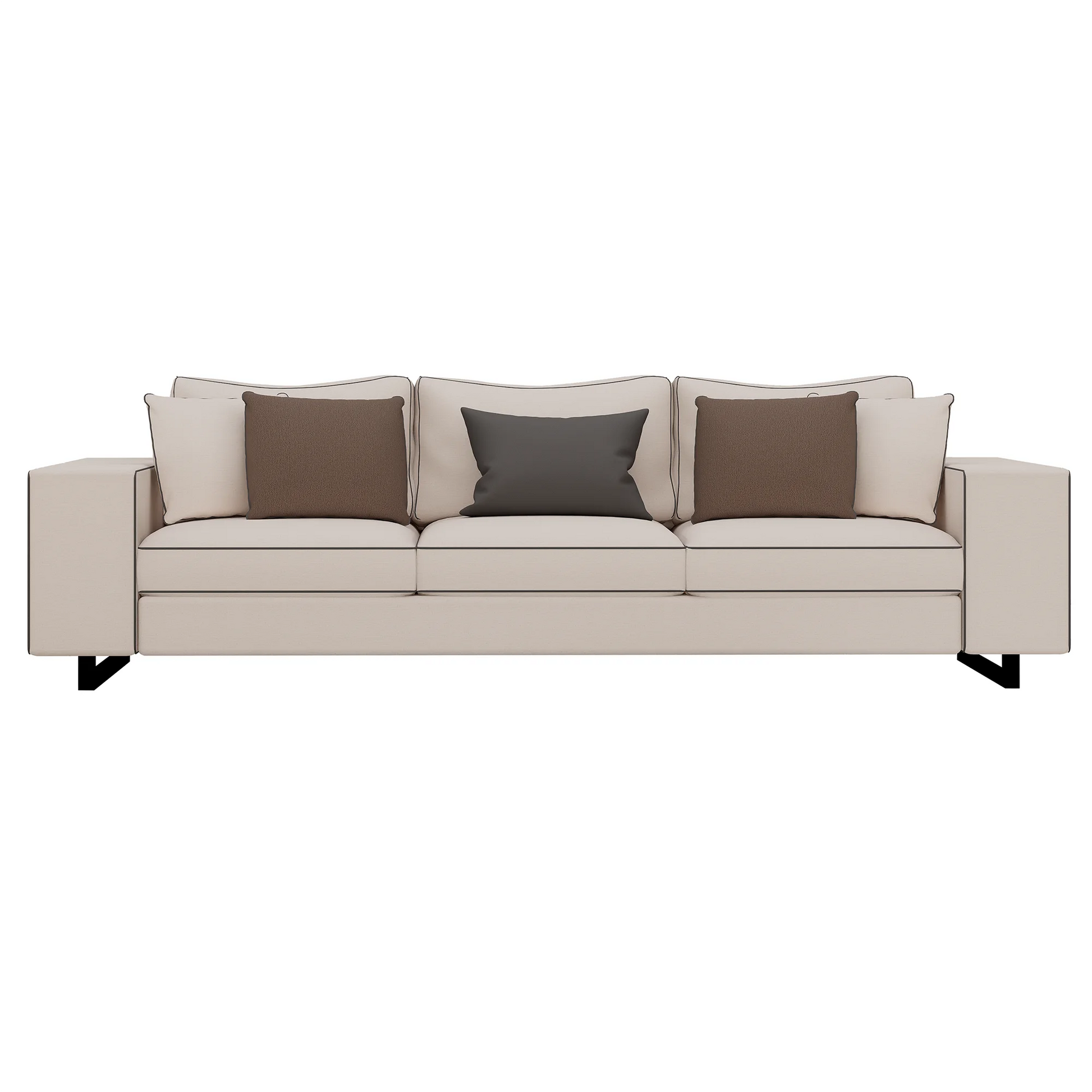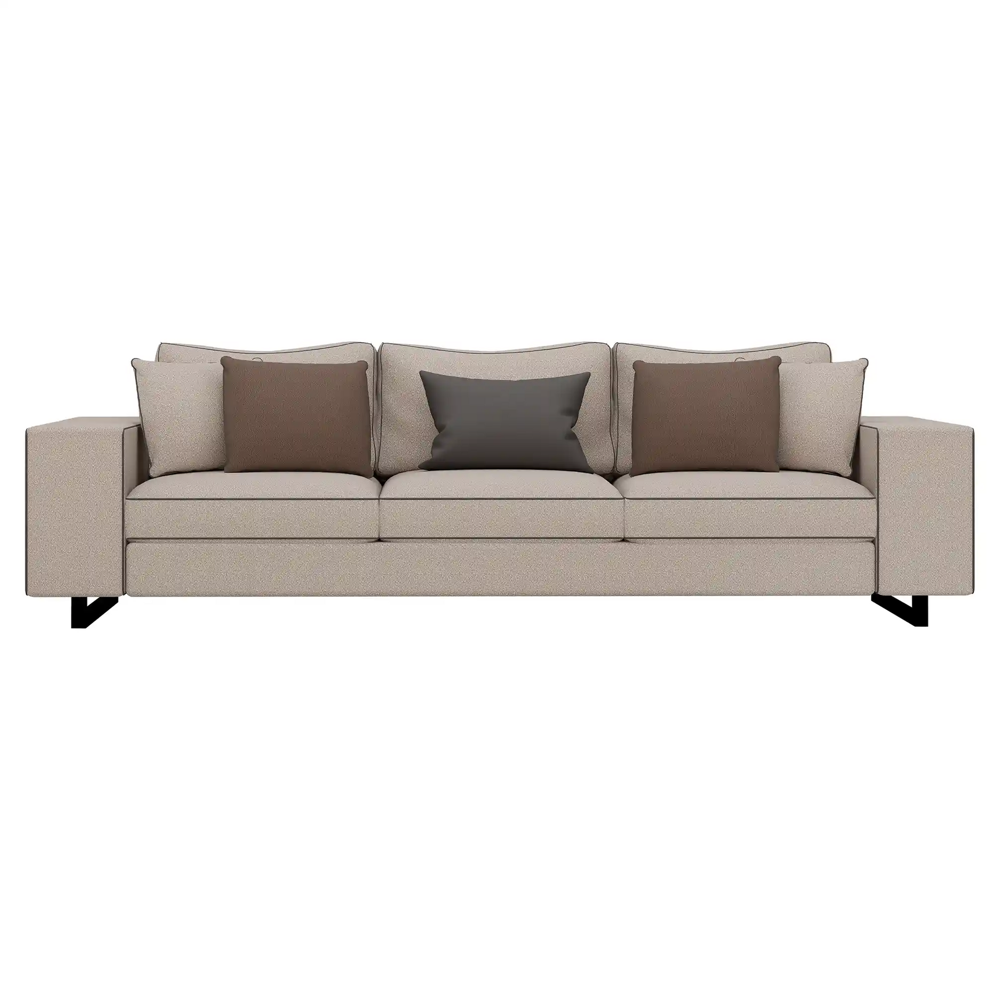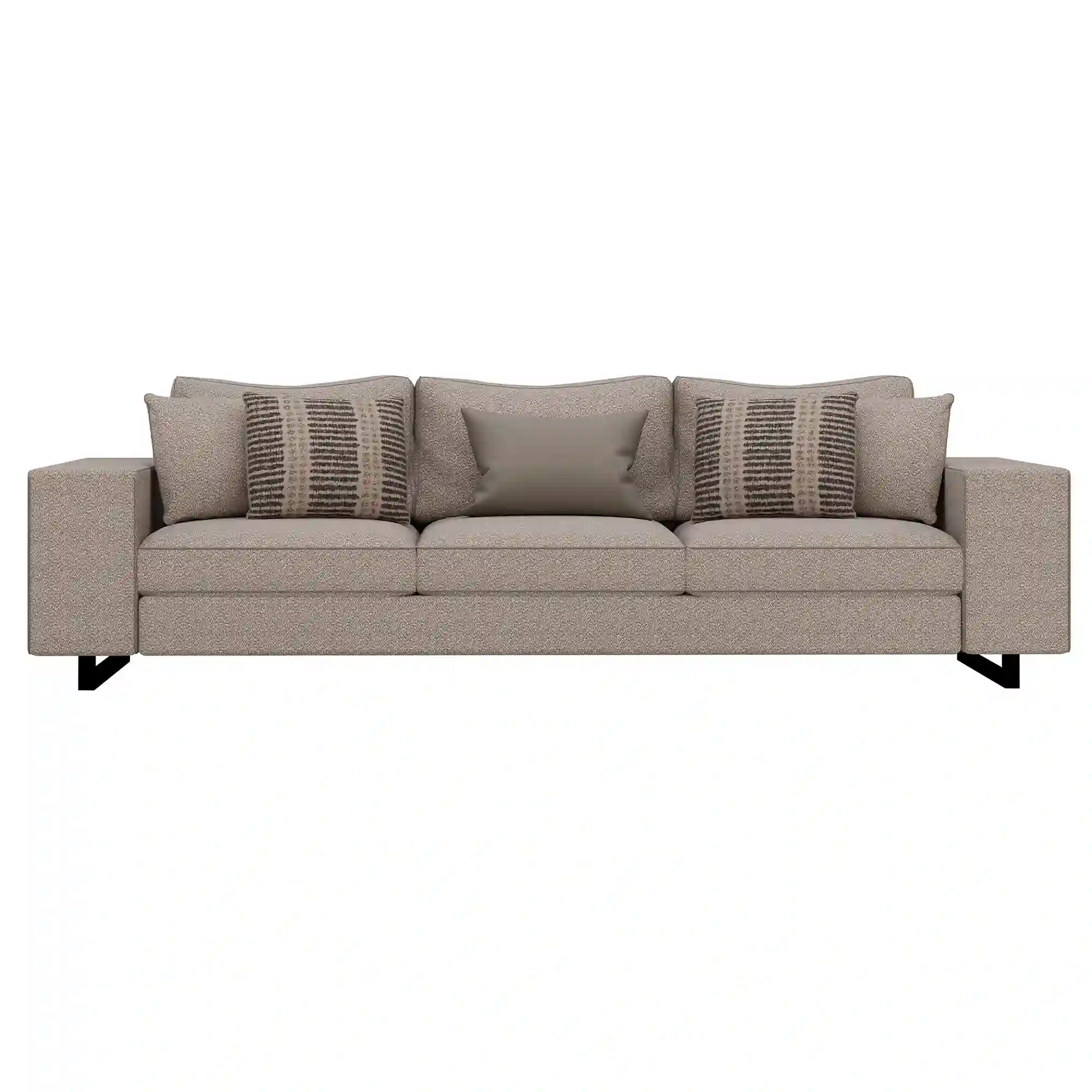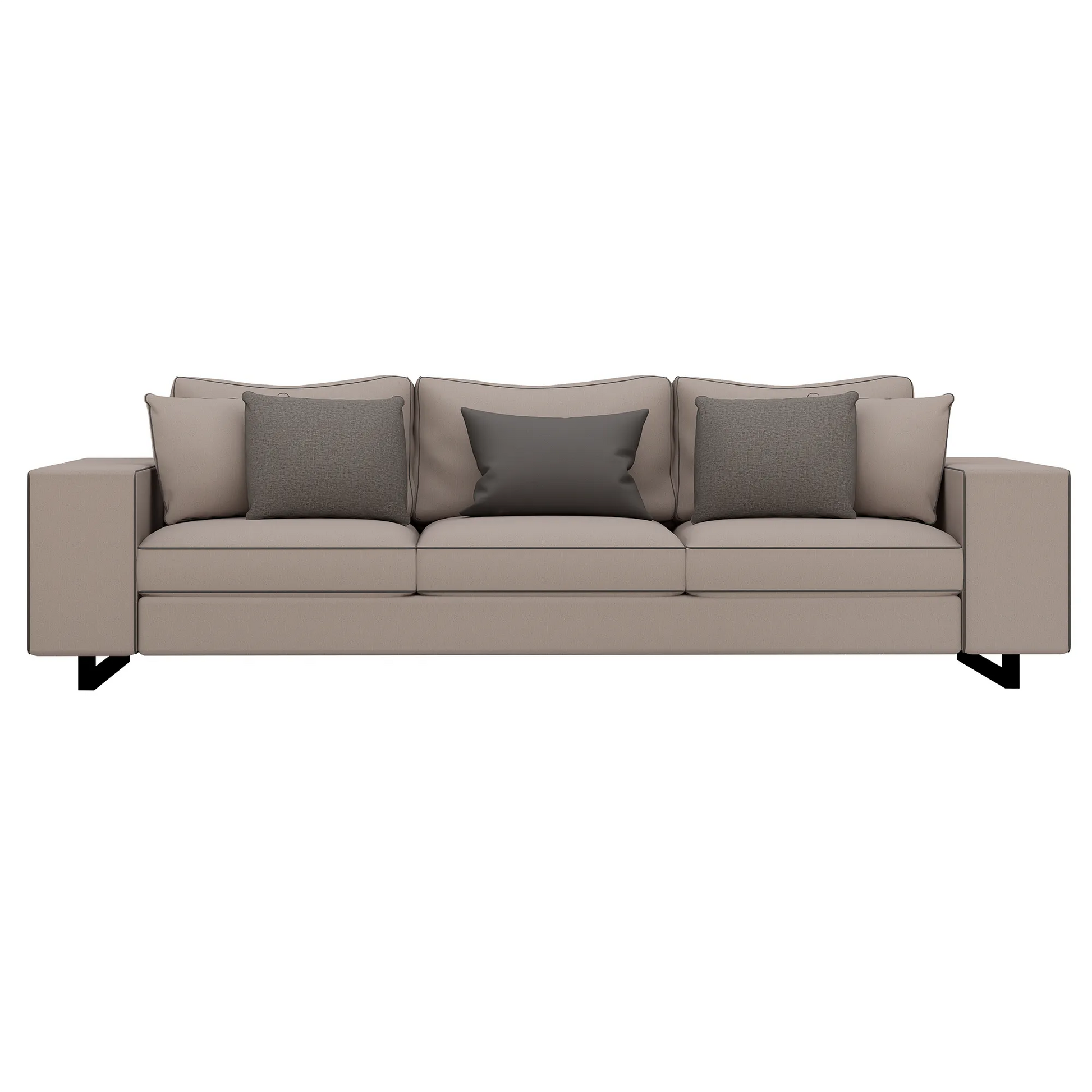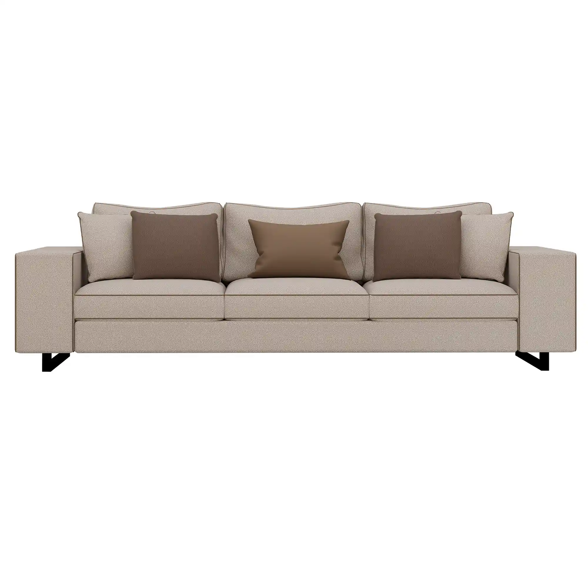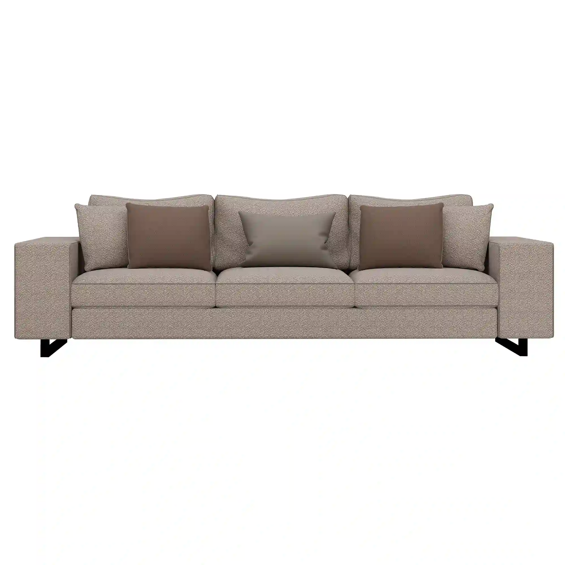 El Sofá Piero es una pieza que equilibra la elegancia formal con un diseño de máximo confort, ideal para salas que buscan un ambiente sofisticado y acogedor. Está tapizado en un tejido suave de tono beige o taupe claro, con un ribete sutil que perfila los cojines, añadiendo un detalle de diseño pulido. Estos cojines, que combinan texturas jaspeadas y tonos sólidos, permiten al usuario personalizar su nivel de soporte y estilo. El Sofá Piero es la elección perfecta para quienes buscan un diseño moderno, un lujo suave y una adaptabilidad excepcional en una pieza central.