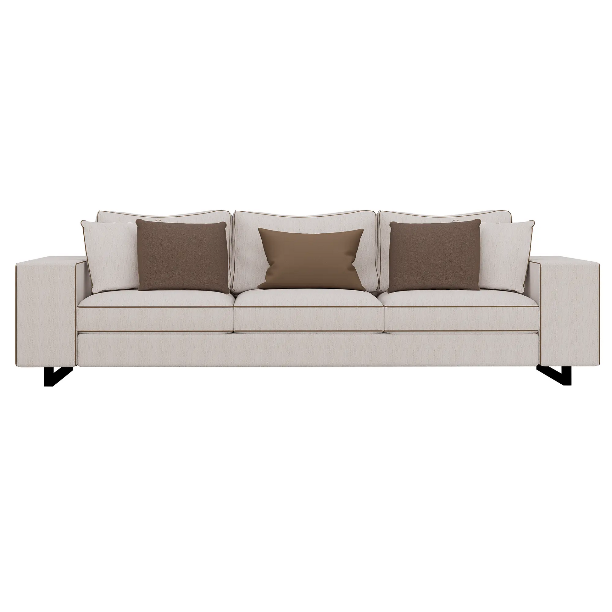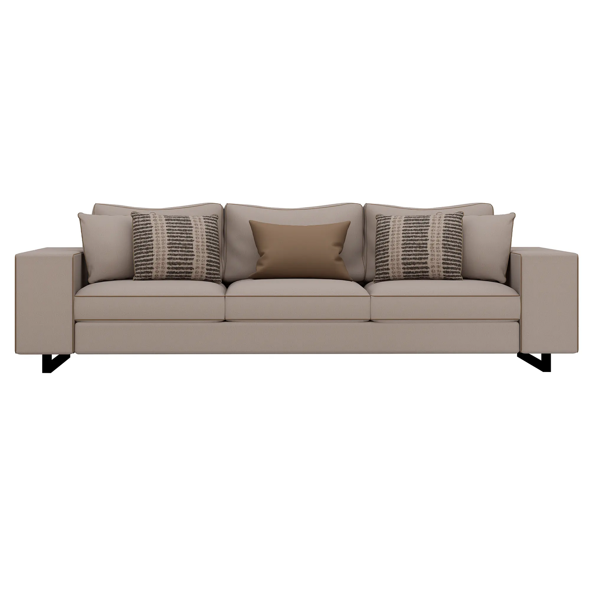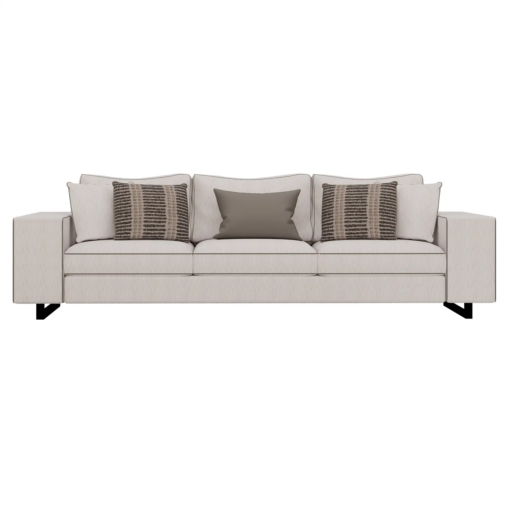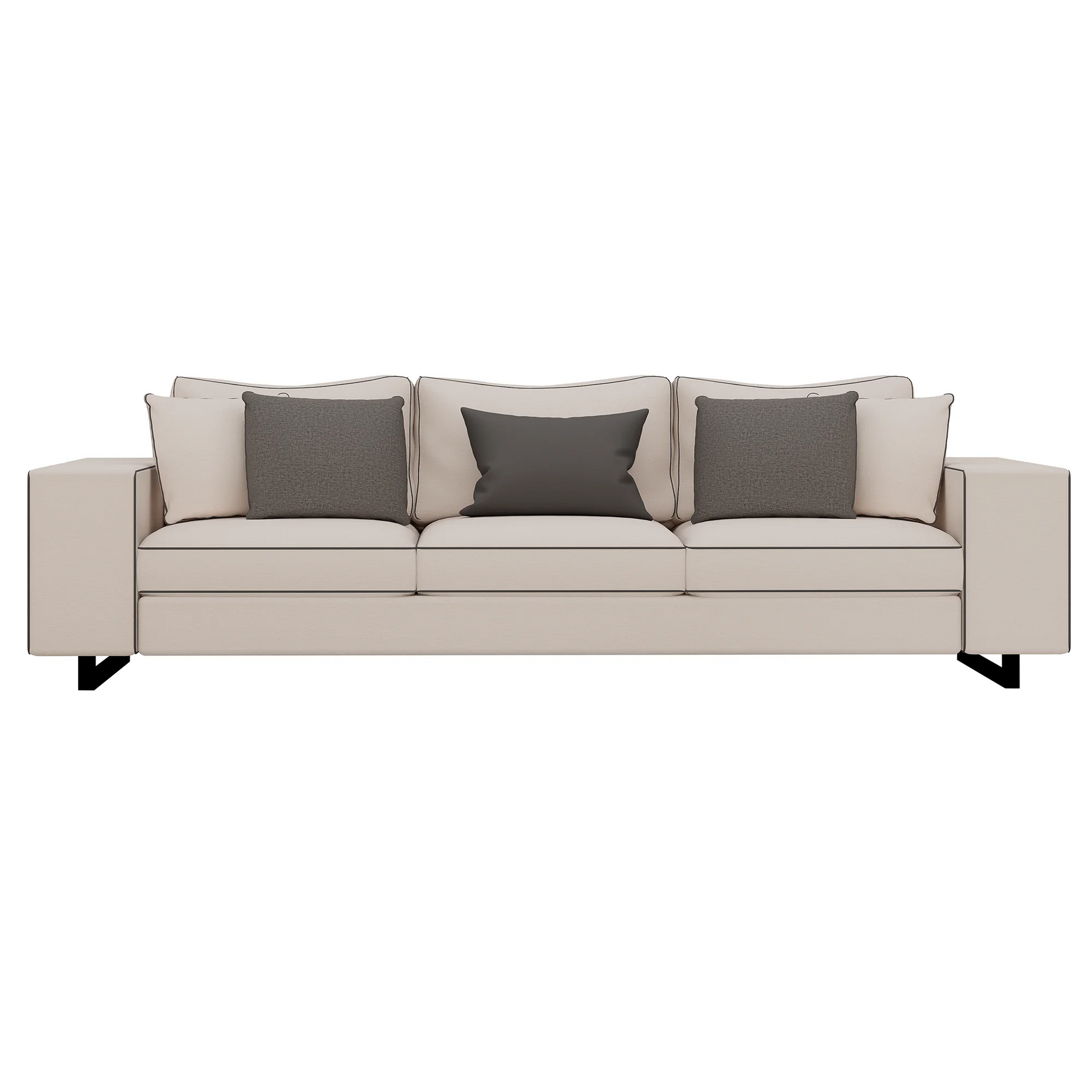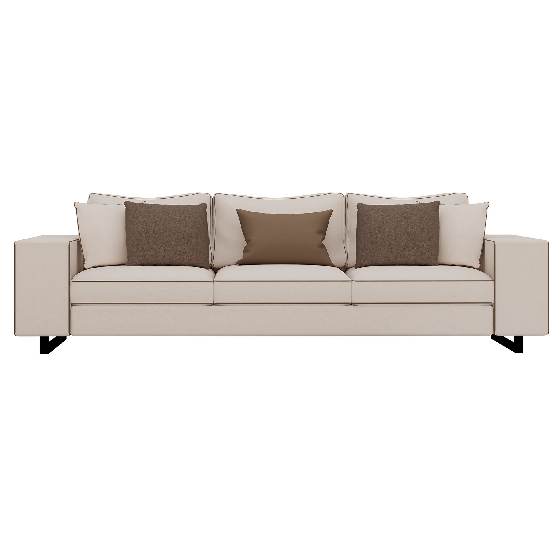 El Sofá Piero es una pieza que equilibra la elegancia formal con un diseño de máximo confort, ideal para salas que buscan un ambiente sofisticado y acogedor. Está tapizado en un tejido suave de tono beige o taupe claro, con un ribete sutil que perfila los cojines, añadiendo un detalle de diseño pulido. Estos cojines, que combinan texturas jaspeadas y tonos sólidos, permiten al usuario personalizar su nivel de soporte y estilo. El Sofá Piero es la elección perfecta para quienes buscan un diseño moderno, un lujo suave y una adaptabilidad excepcional en una pieza central.