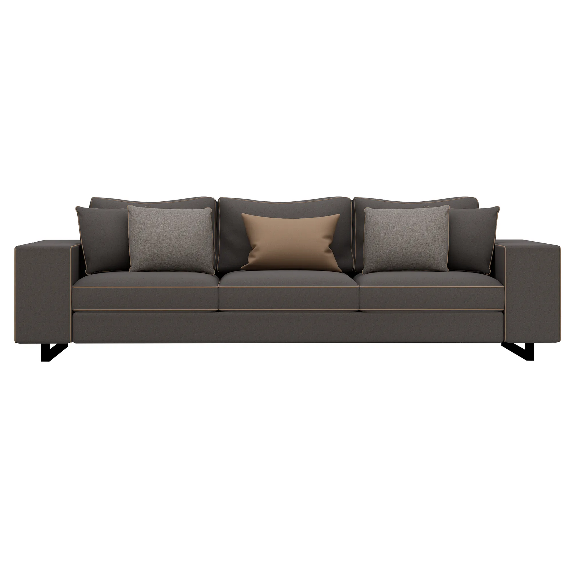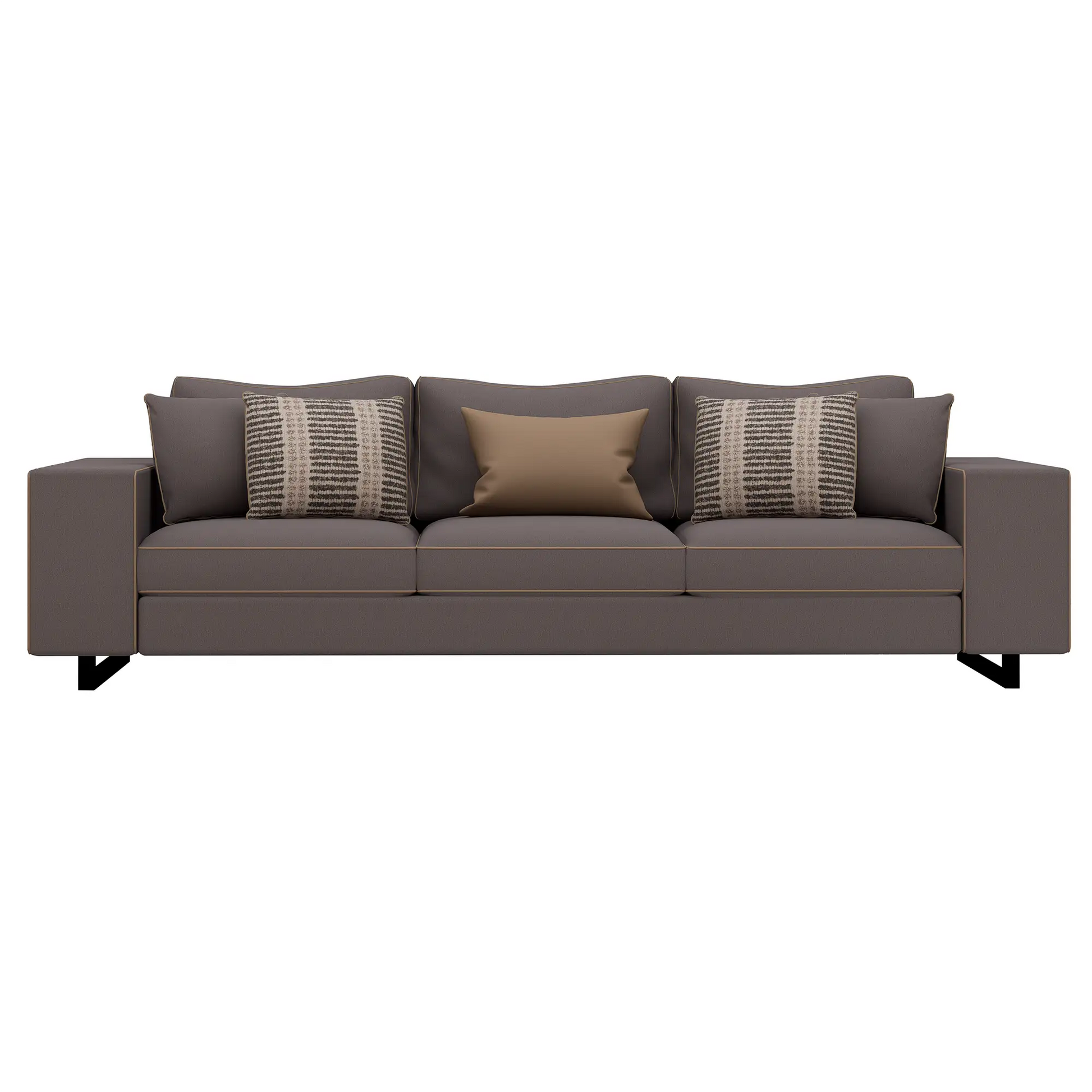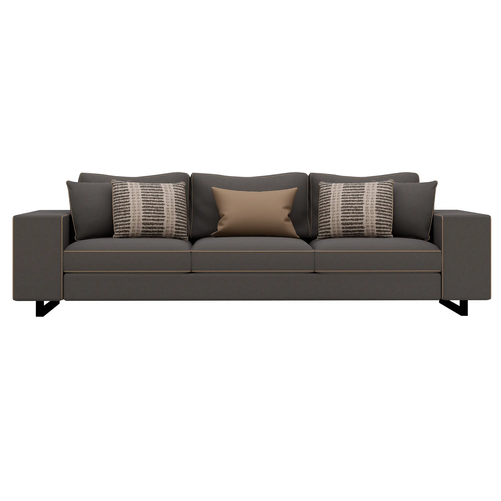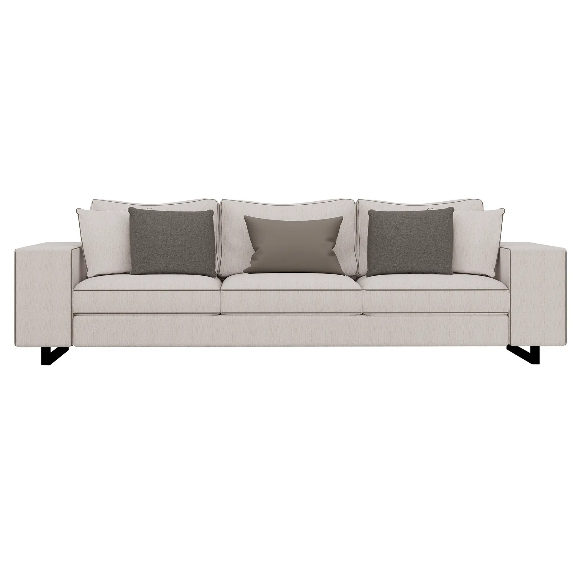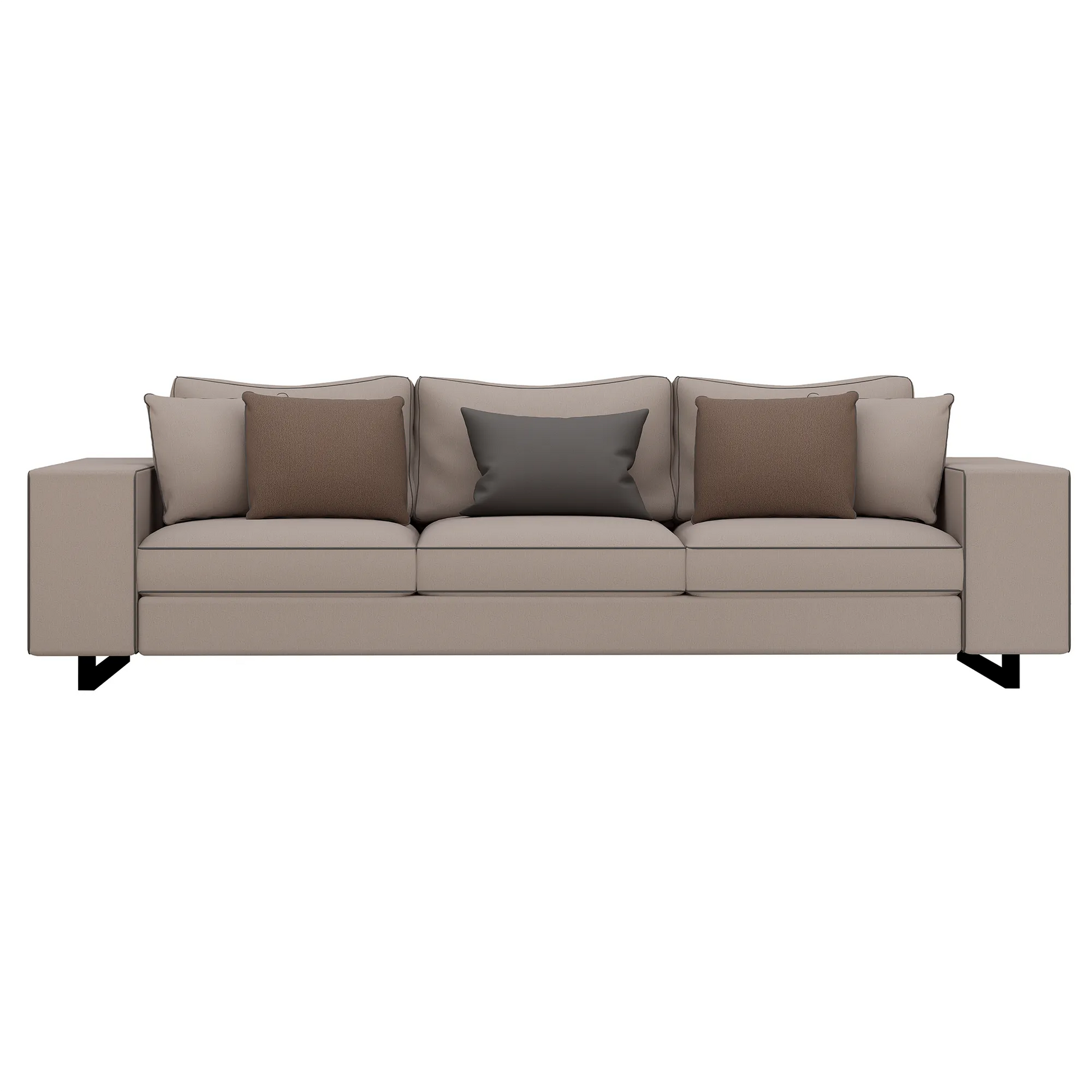 El Sofá Piero es una pieza que equilibra la elegancia formal con un diseño de máximo confort, ideal para salas que buscan un ambiente sofisticado y acogedor. Está tapizado en un tejido suave de tono beige o taupe claro, con un ribete sutil que perfila los cojines, añadiendo un detalle de diseño pulido. Estos cojines, que combinan texturas jaspeadas y tonos sólidos, permiten al usuario personalizar su nivel de soporte y estilo. El Sofá Piero es la elección perfecta para quienes buscan un diseño moderno, un lujo suave y una adaptabilidad excepcional en una pieza central.