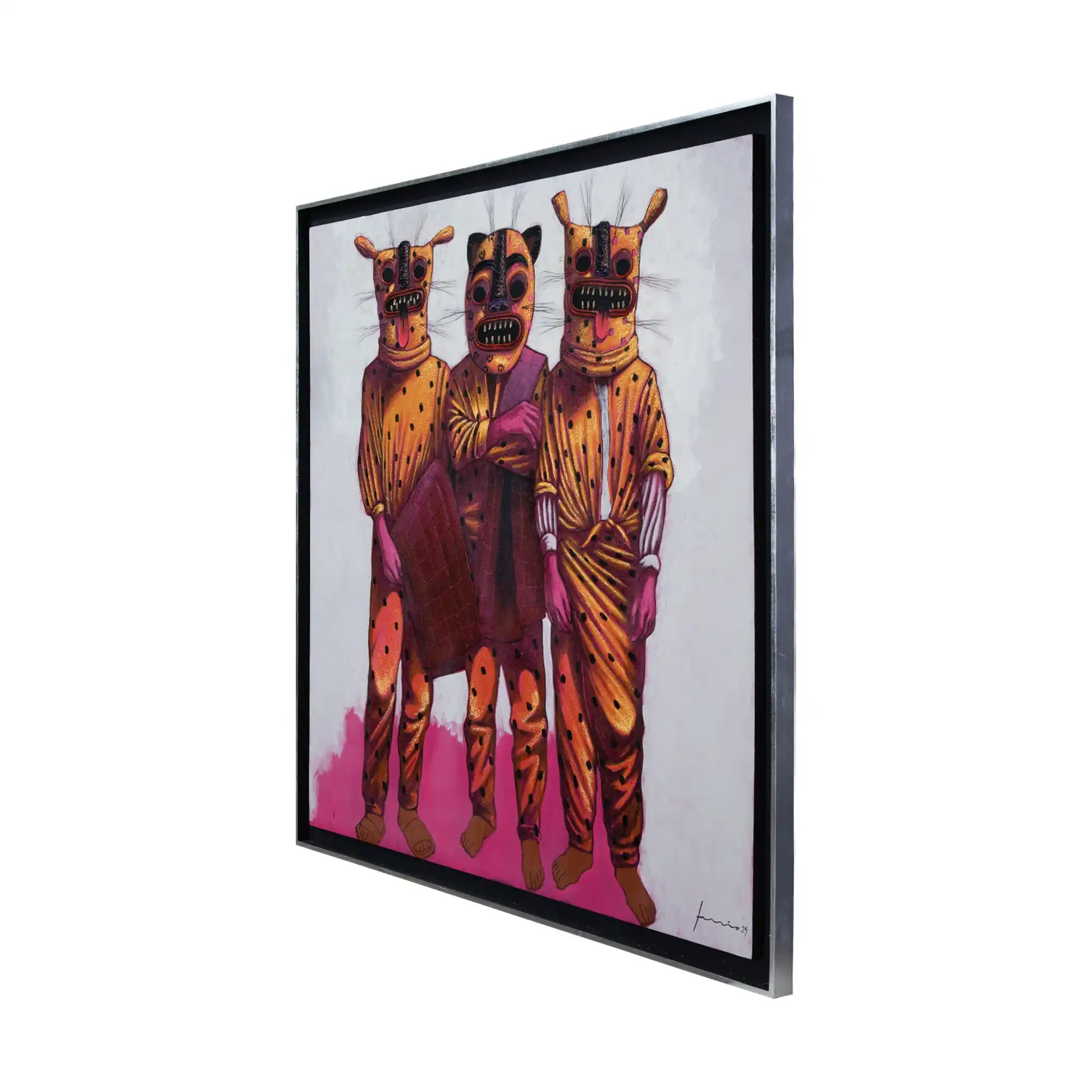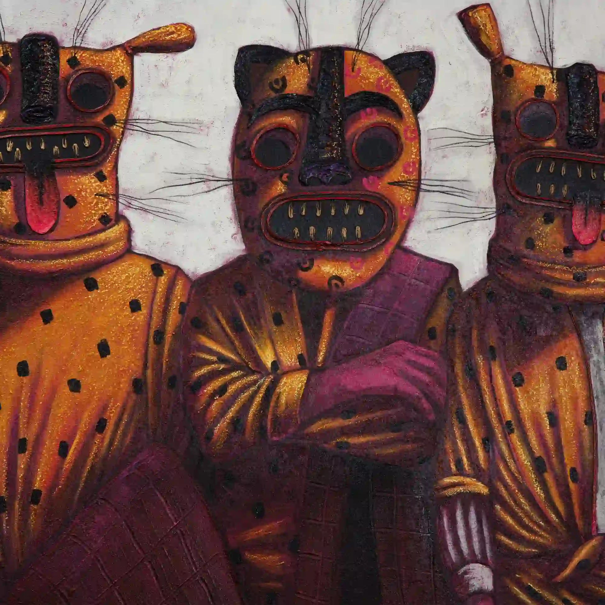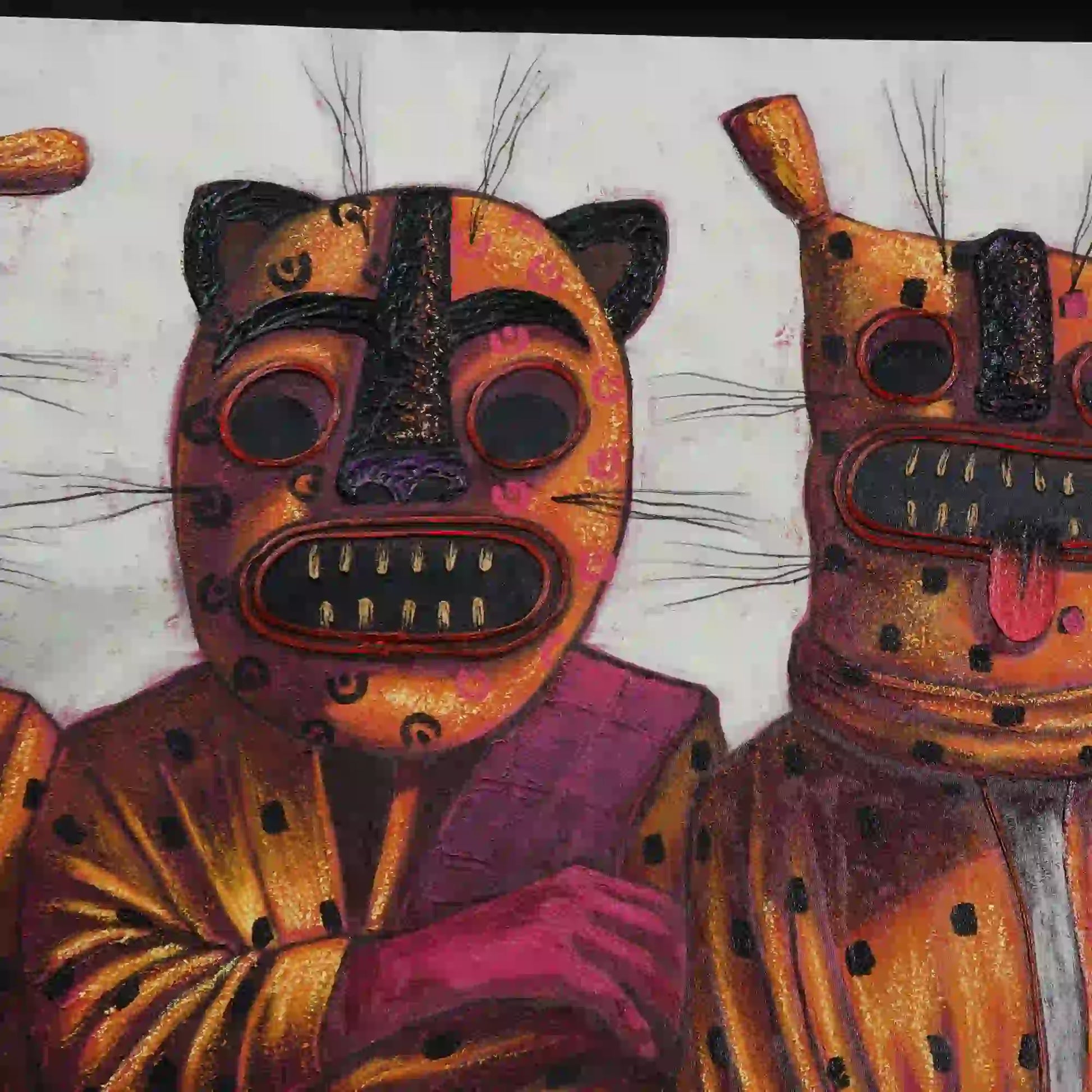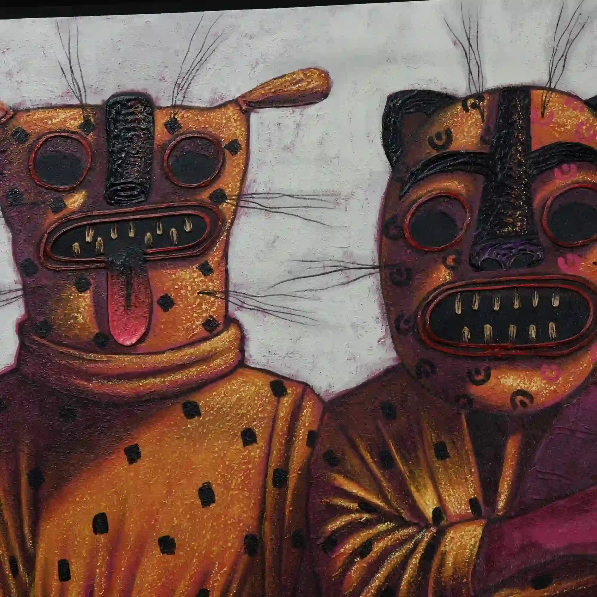El cuadro "Tecuanes" es una obra de arte vibrante y expresiva que rinde homenaje a la tradicional danza mexicana de los Tecuanes (palabra náhuatl para "devorador de gente" o "jaguar"). La obra no solo es una representación folclórica, sino una declaración de arte contemporáneo enmarcada en una moldura sobria. El cuadro "Tecuanes" es ideal para coleccionistas o para cualquier espacio que busque inyectar una dosis de cultura, color y una narrativa artística fuerte.