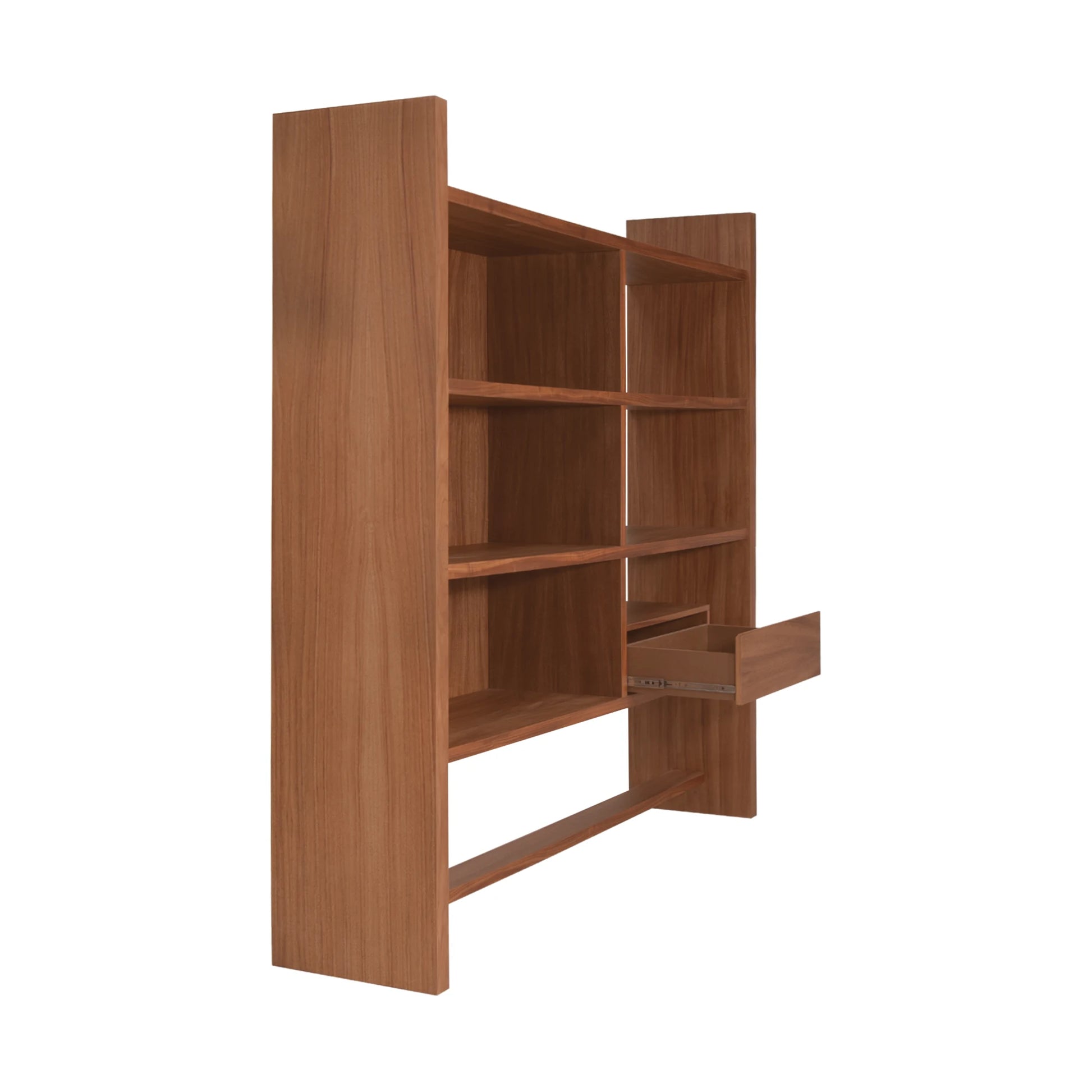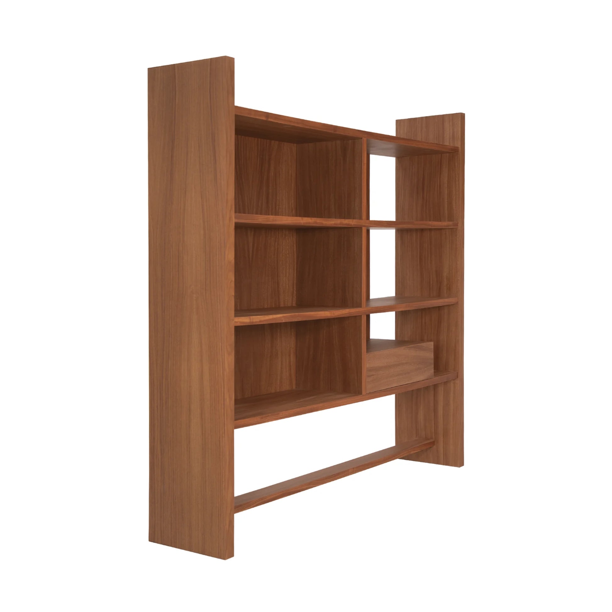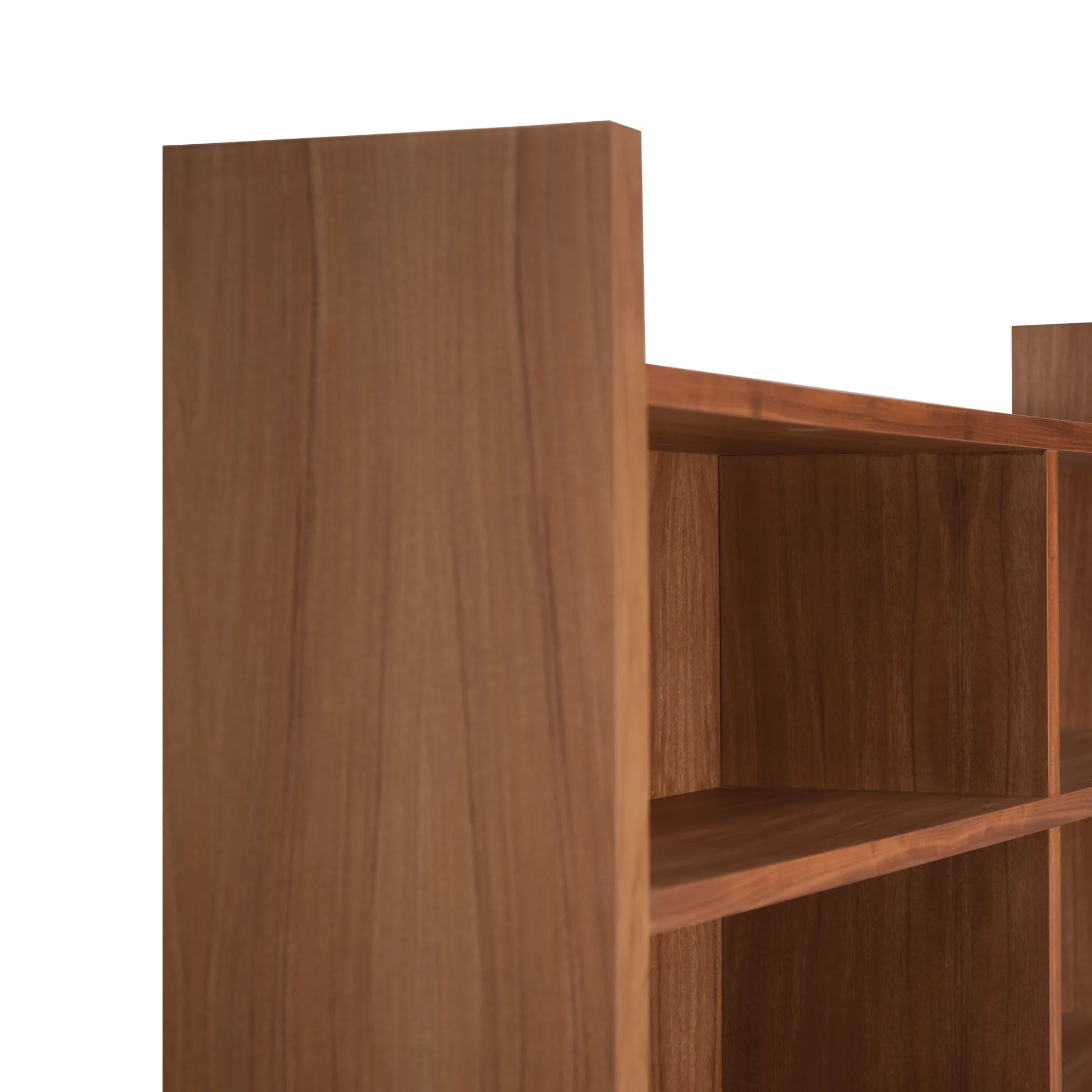 El Librero Kora Parota es una pieza que personifica la elegancia funcional y minimalista. Acabado completamente en un tono cálido profundo, posee una sutil textura de madera que añade riqueza sin sacrificar la sofisticación. Los frentes de los compartimentos son lisos y sin tiradores visibles, manteniendo un aspecto seamless y moderno que es clave en la estética contemporánea. El Librero Kora es la solución perfecta para quienes buscan una pieza que ofrezca gran capacidad de organización con un diseño discreto, potente y absolutamente atemporal.