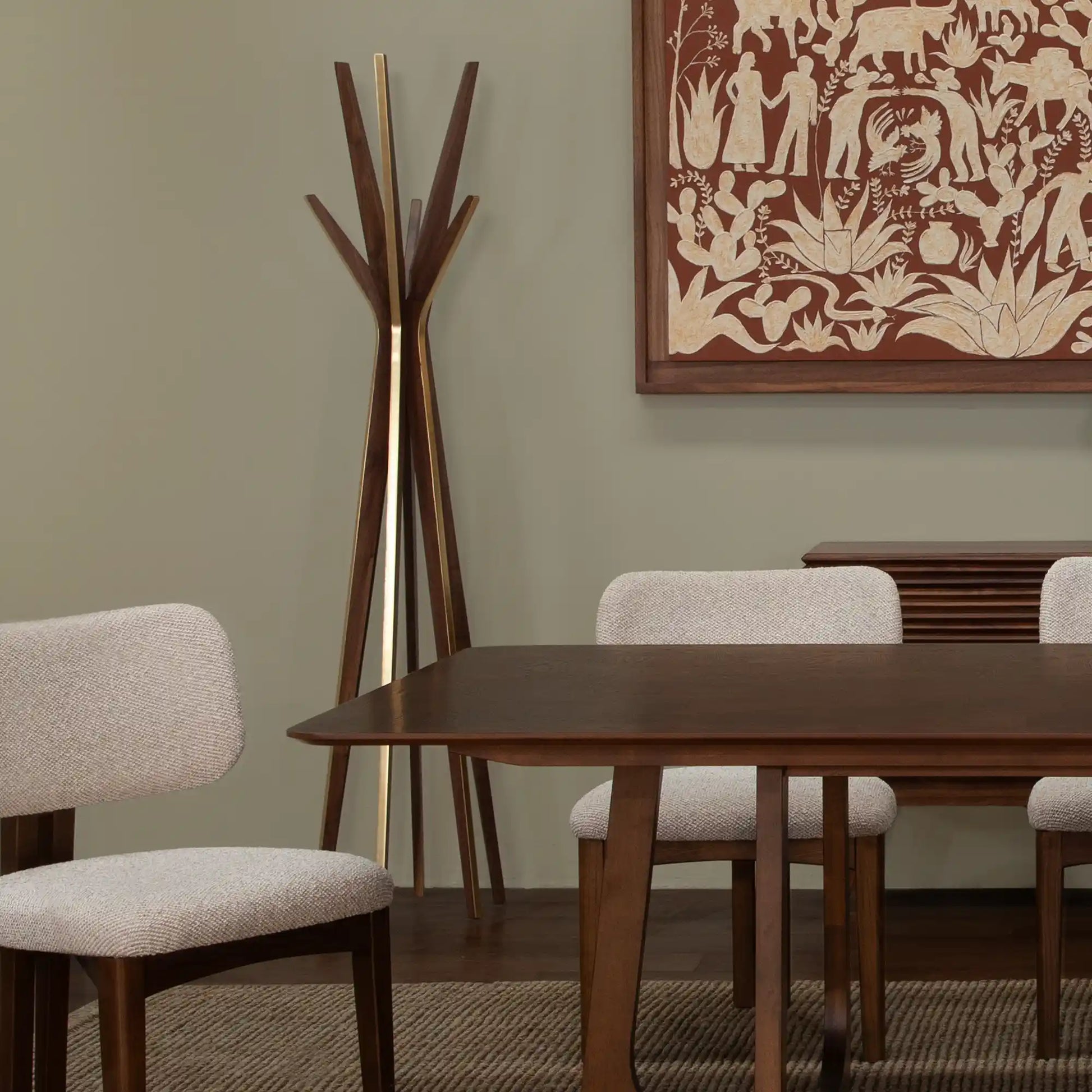 El Perchero Nórdico Nogal es una pieza estilizada que destaca por su diseño escandinavo y minimalista. Fabricado en madera de nogal, este perchero combina líneas limpias y una estructura robusta, ideal para añadir un toque de elegancia natural a cualquier espacio. Su diseño en forma de trípode maximiza el almacenamiento para abrigos, sombreros y accesorios, mientras que su acabado en nogal resalta la calidez de la madera. Perfecto para entradas o dormitorios, este perchero es una solución práctica y decorativa que complementa cualquier estilo moderno o contemporáneo.