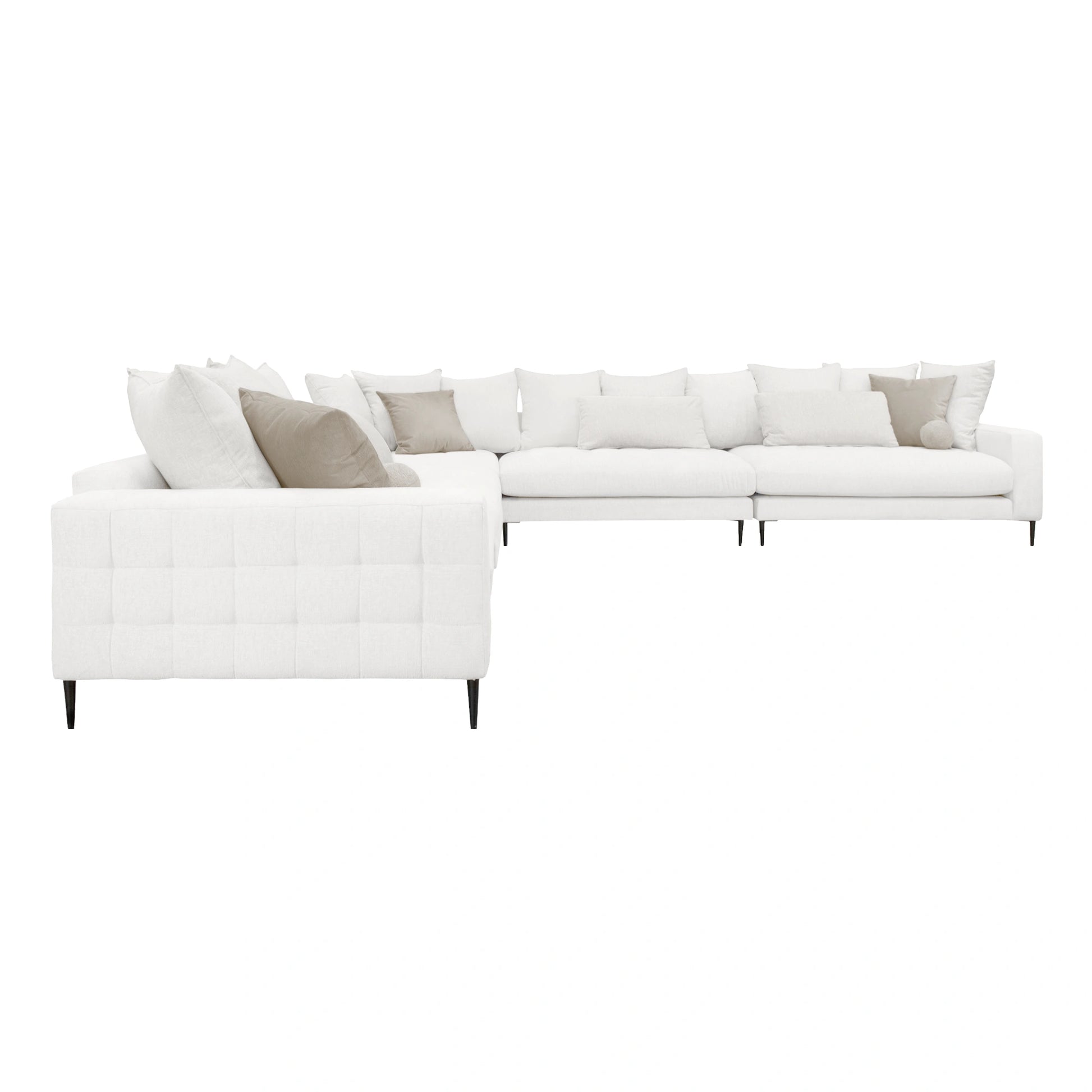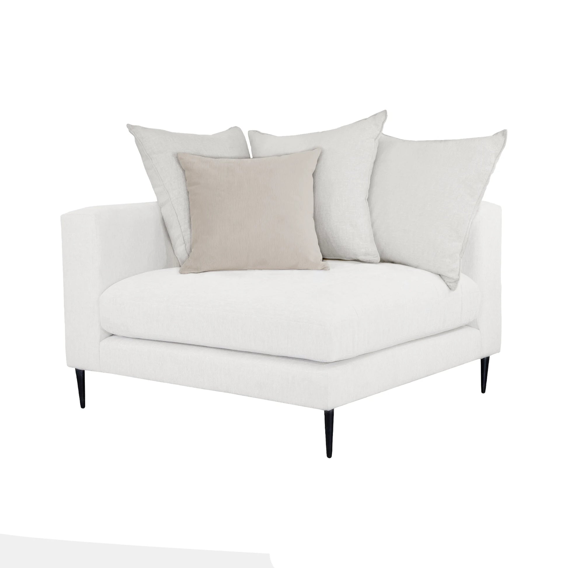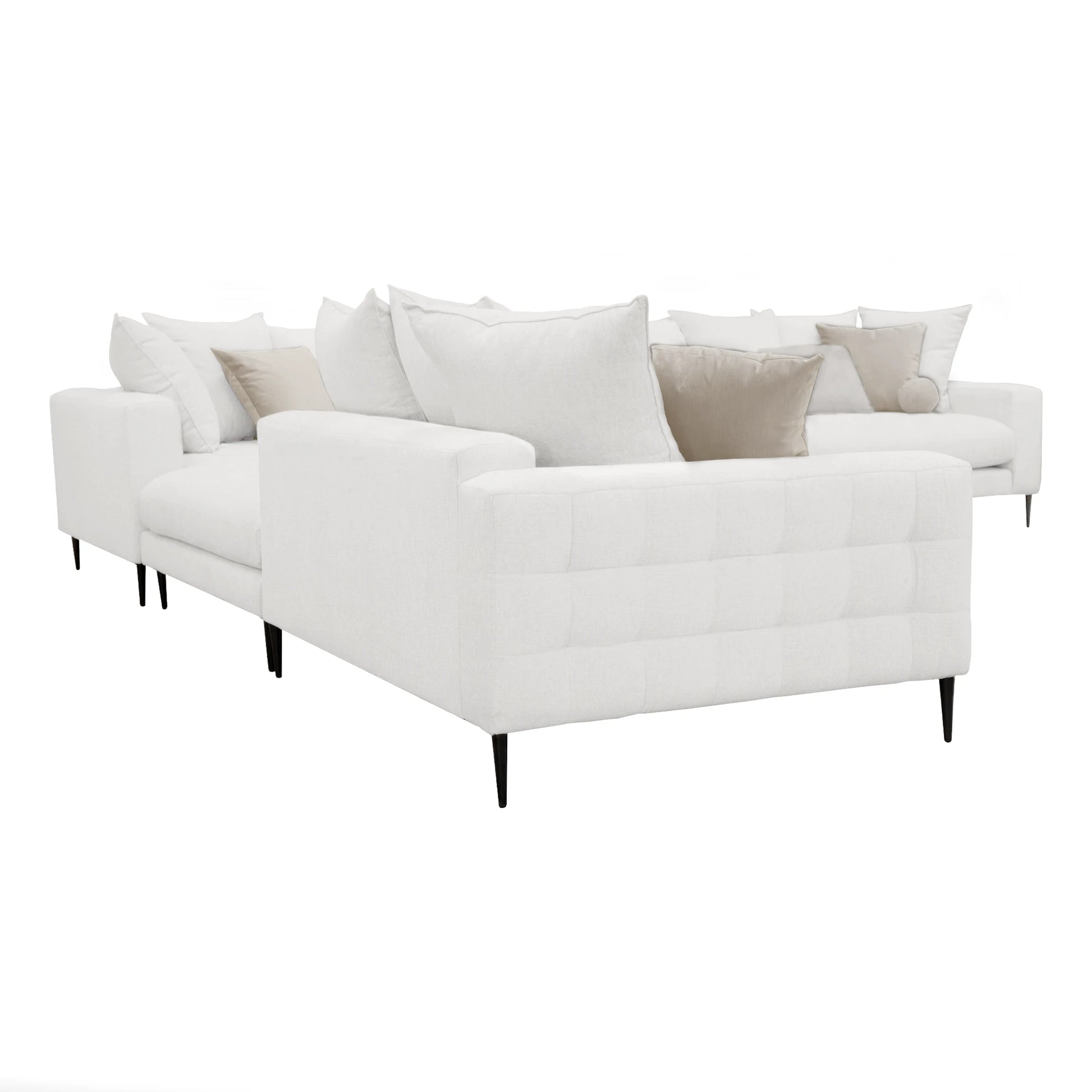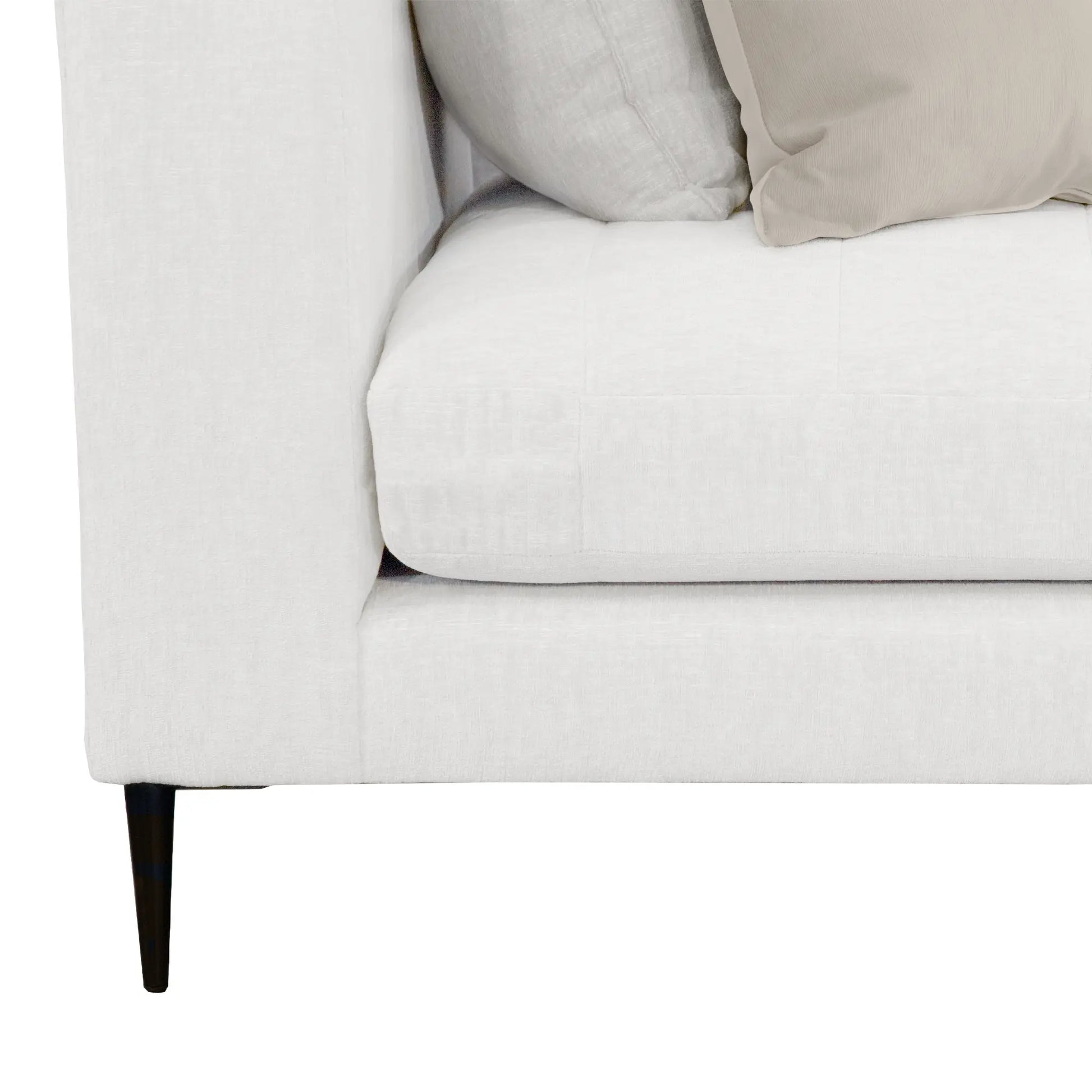 La Escuadra Milán es una pieza de diseño con una estructura limpia y líneas definidas, haciéndolo ideal para aquellos que buscan un toque moderno sin sacrificar el confort. Tapizado en una tela suave de color gris claro, La Escuadra Milán cuenta con un sutil acolchado capitoné en los cojines del asiento, que no solo añade textura visual, sino también un confort excepcional. Las patas delgadas y elegantes, acabadas en negro mate, elevan el diseño del sofá, dándole una ligereza visual que lo hace perfecto para espacios tanto pequeños como amplios. El Sofá Milán es una elección ideal para salas de estar que buscan una combinación perfecta de estilo y funcionalidad, ofreciendo un lugar cómodo y chic para relajarse.