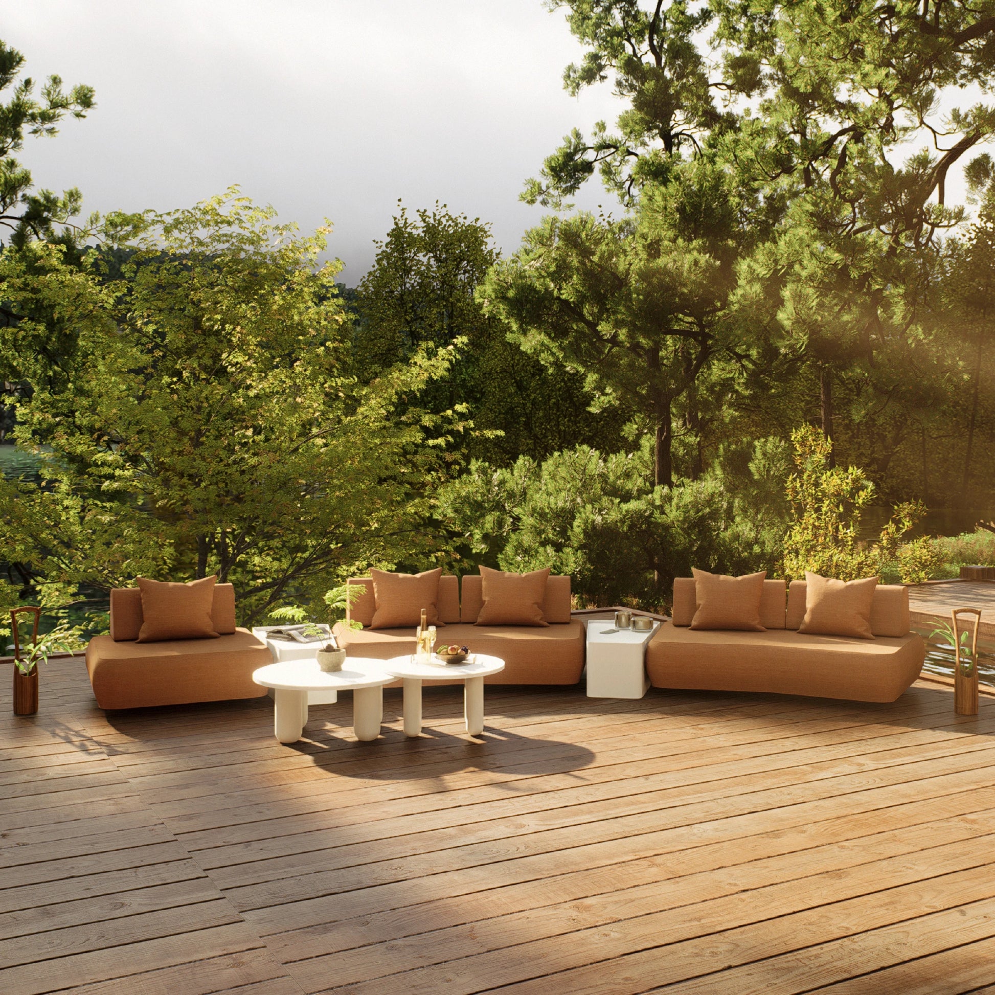 La Sala Dune es un tributo a la sofisticación moderna con un diseño modular que invita a la relajación y la conexión. Sus líneas suaves y redondeadas evocan la serenidad de las dunas del desierto, mientras que su tapicería en tonos naturales crea una atmósfera cálida y acogedora. Cada elemento de esta sala está diseñado para brindar el máximo confort. Los cojines generosos y los respaldos ajustables se adaptan a las necesidades de tu espacio y estilo de vida, convirtiendo cada momento en una experiencia de descanso sublime. La integración de una mesa lateral en acabado blanco, de formas orgánicas, añade funcionalidad y un contraste visual que realza la elegancia del conjunto.
