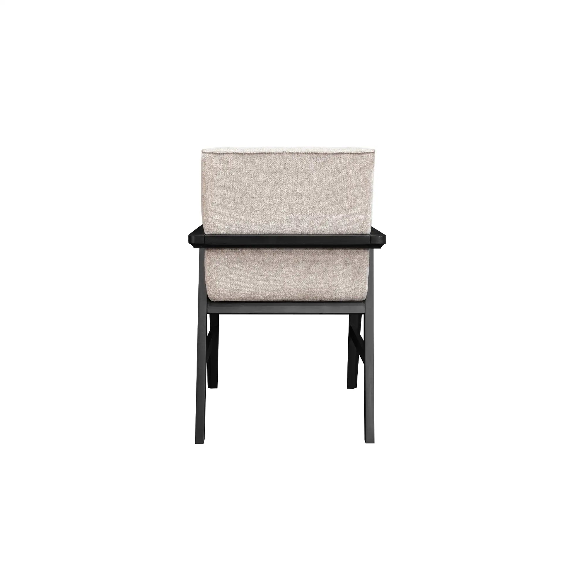 La Silla Cabos es el complemento ideal para quienes buscan una estética contemporánea que equilibra la calidez del tejido con la fuerza visual de la madera oscura. Su diseño destaca por una estructura robusta de madera negra con un acabado mate que resalta la veta natural del material. La silueta se define por líneas arquitectónicas limpias, con brazos integrados que ofrecen un soporte ergonómico y una presencia sólida en la mesa.