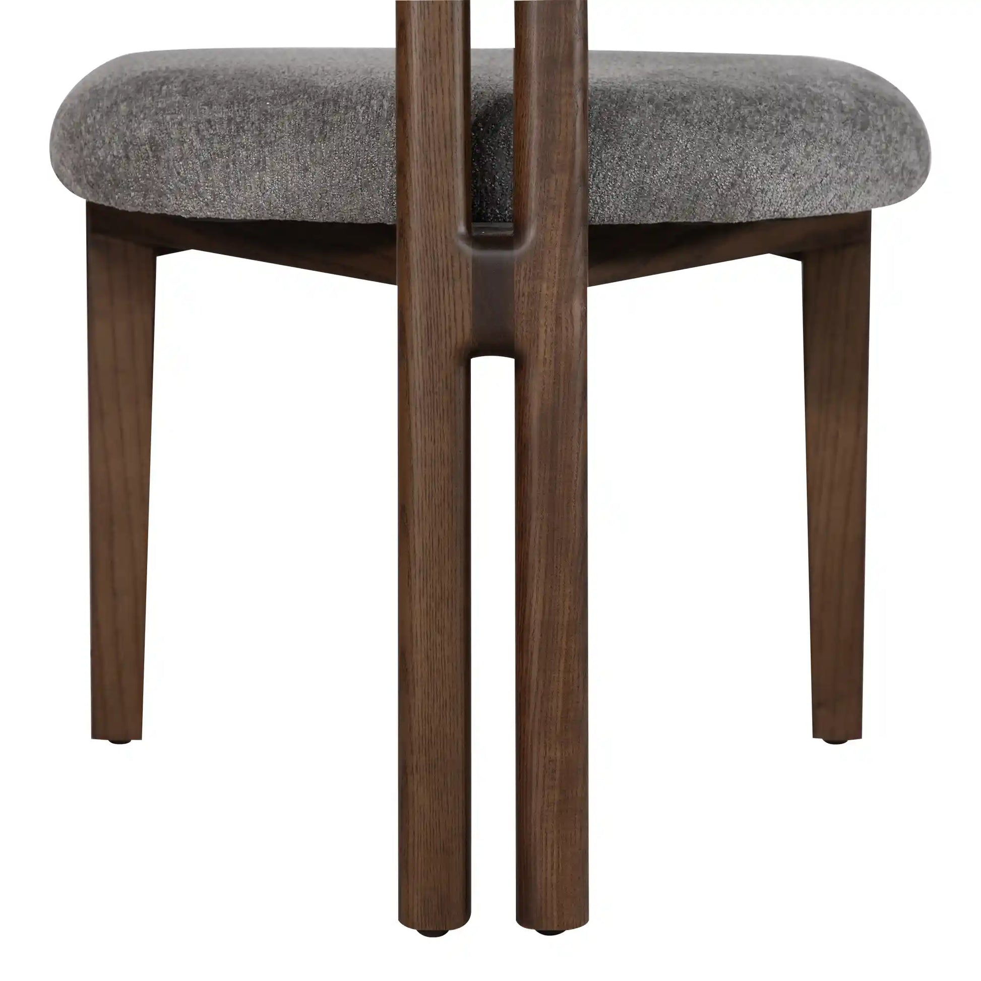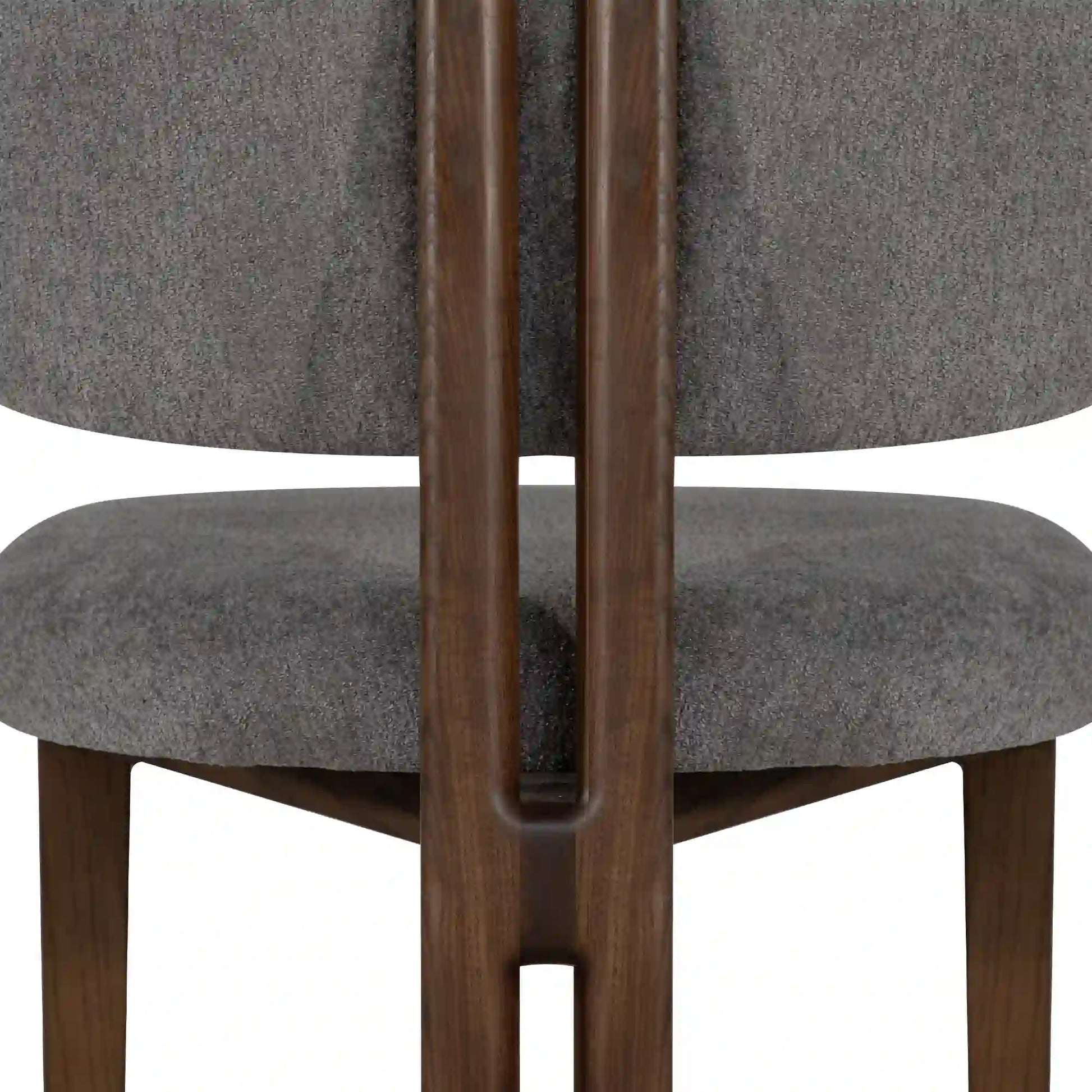 La Silla Sevilla Grey es una pieza de comedor o acento que logra un balance perfecto entre la calidez de la madera y el confort envolvente de su tapicería. Un detalle clave de diseño es cómo el respaldo se sujeta al marco de madera mediante un panel central vertical que se extiende hacia abajo, creando un punto focal elegante en la parte trasera. La Silla Sevilla Grey es la elección ideal para quienes buscan un diseño moderno, un confort ergonómico y una silla que aporte un toque de sofisticación atemporal a la mesa.