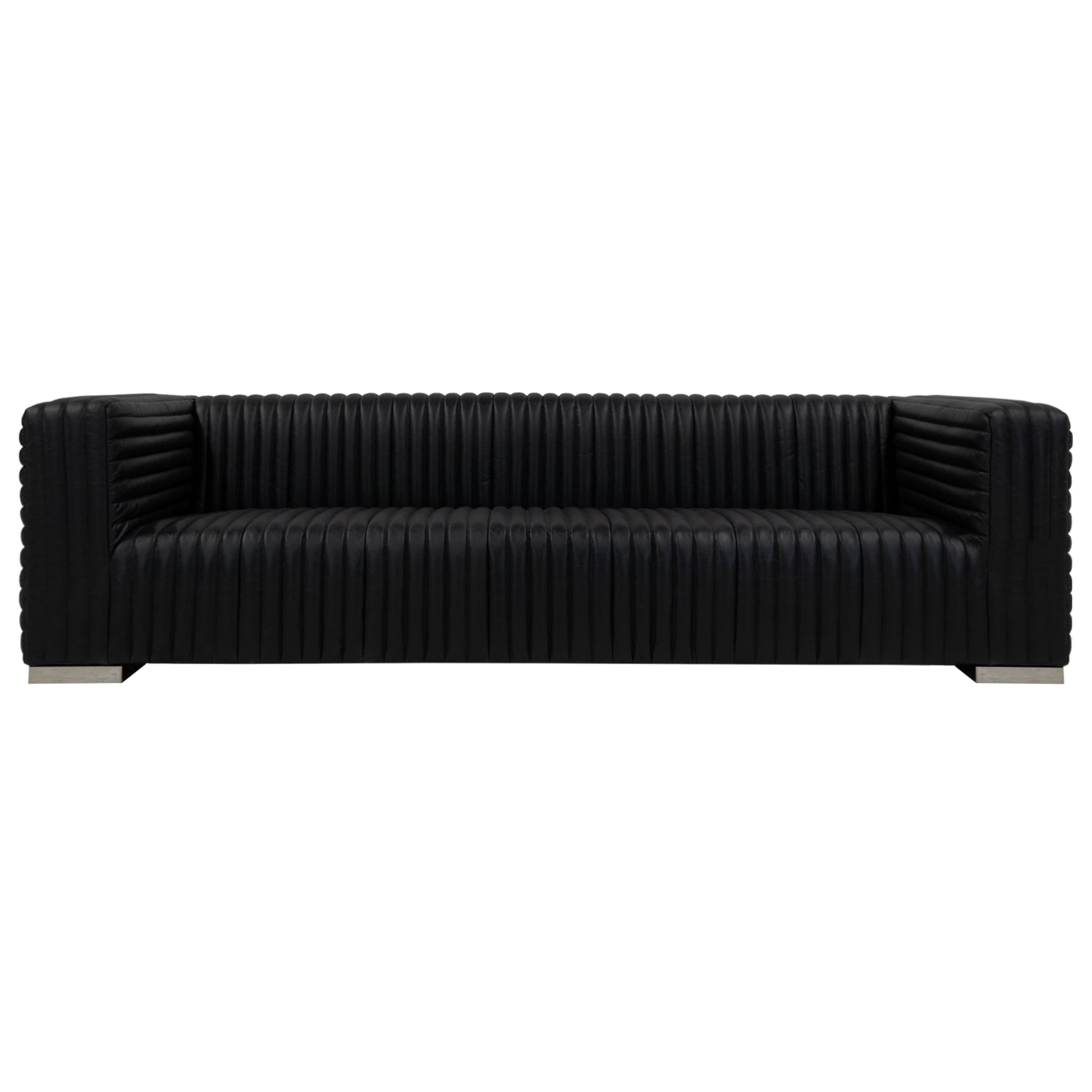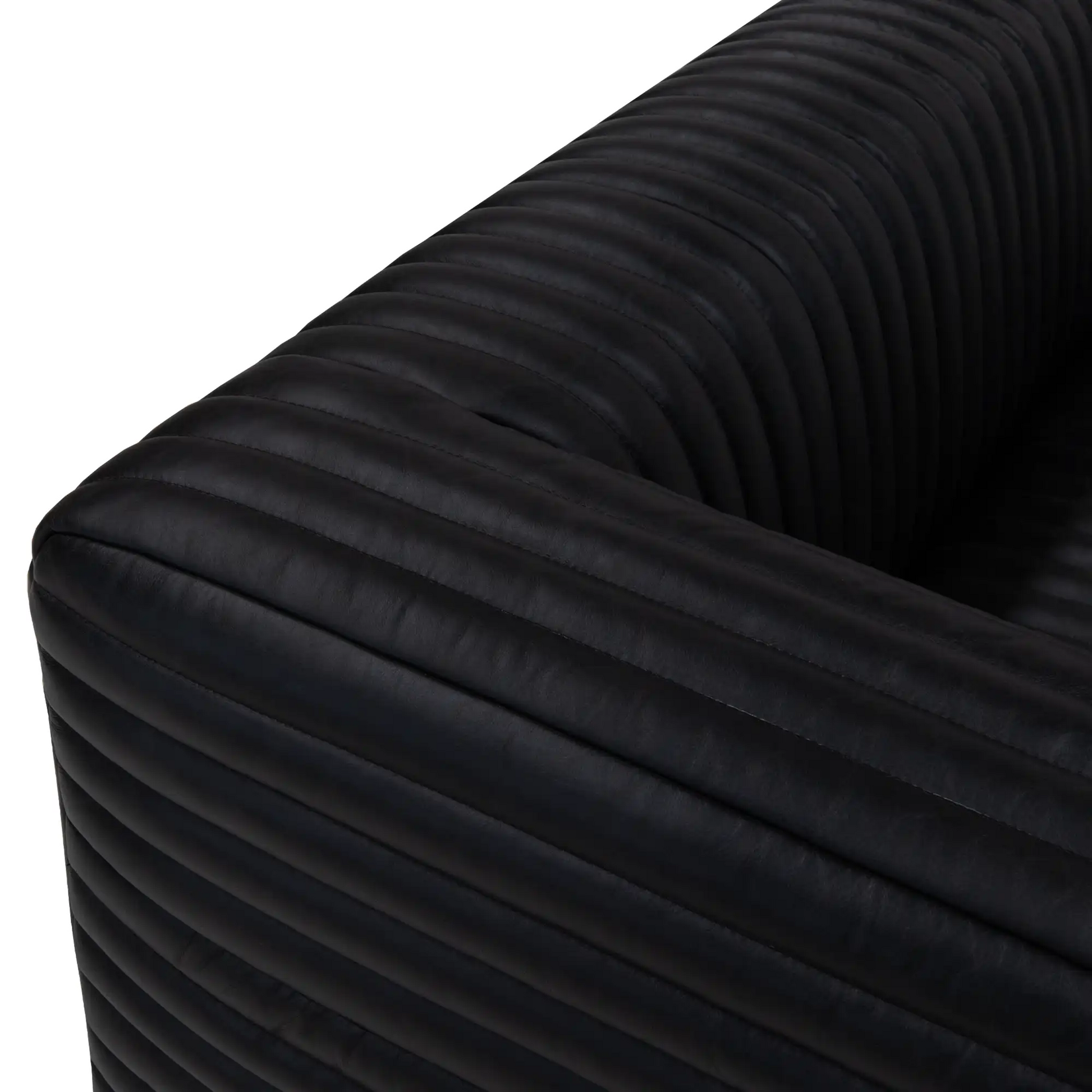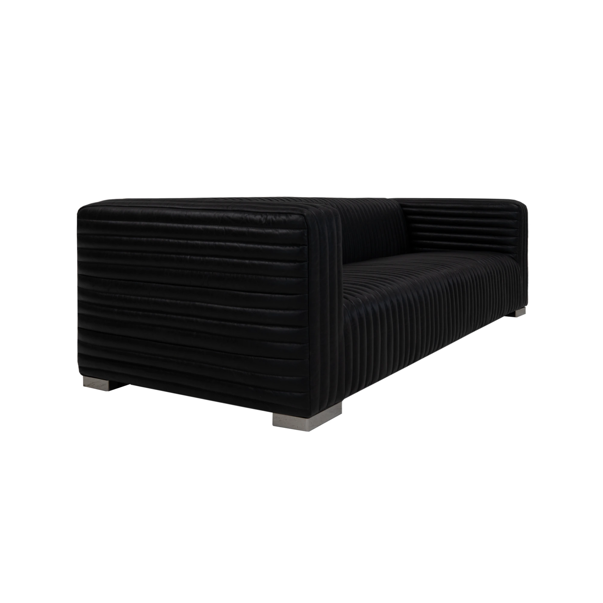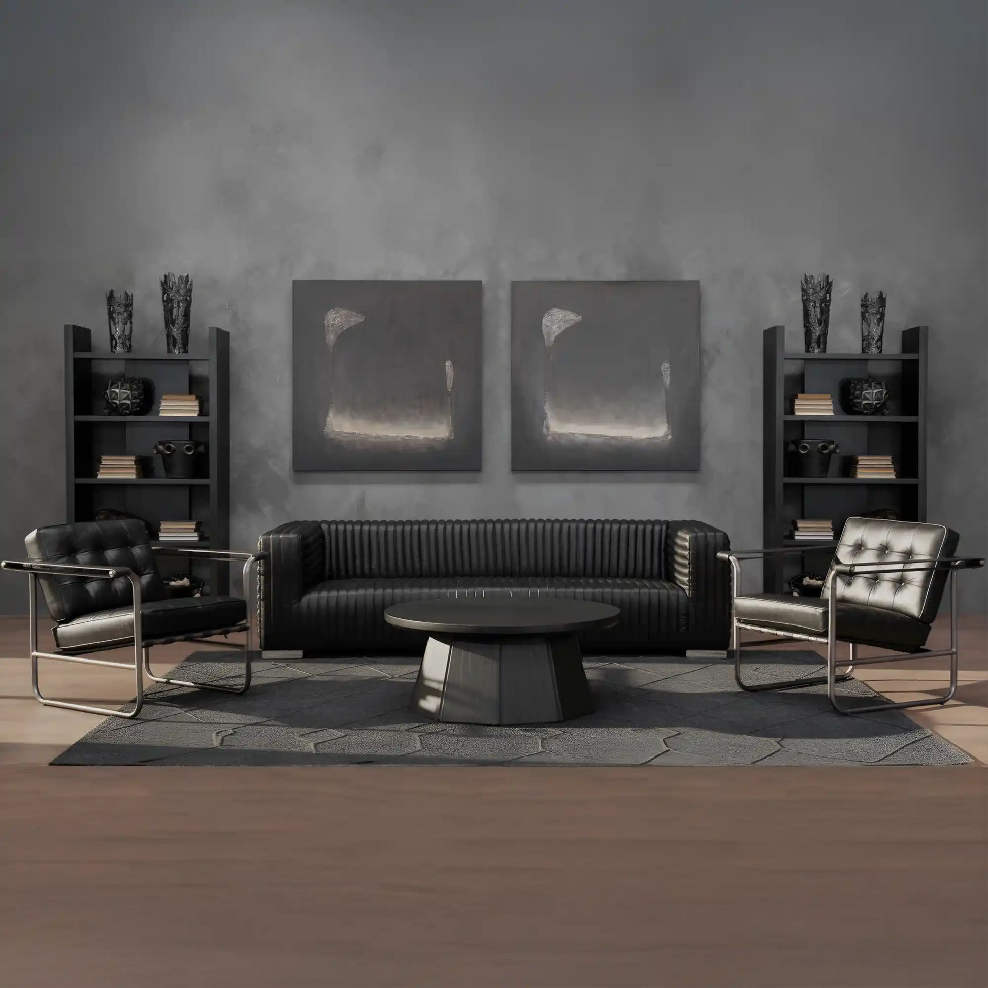 El Sofá Bamako Black es una pieza que redefine el lujo dramático, combinando una silueta moderna y estructurada con una rica textura acanalada que evoca el glamour del Art Déco. Su diseño se caracteriza por el uso de líneas verticales profundas y continuas que cubren por completo el cuerpo del sofá, incluyendo los brazos y el respaldo. Este patrón textural no solo aporta una dimensión visual y táctil única, sino que también crea un juego sutil de luces y sombras sobre el acabado negro profundo. Confeccionado con cuero de grano superior argentino, el Sofá Bamako Black es la elección perfecta para salas que buscan un diseño de alto impacto, sofisticación atrevida y una declaración de estilo inconfundible.